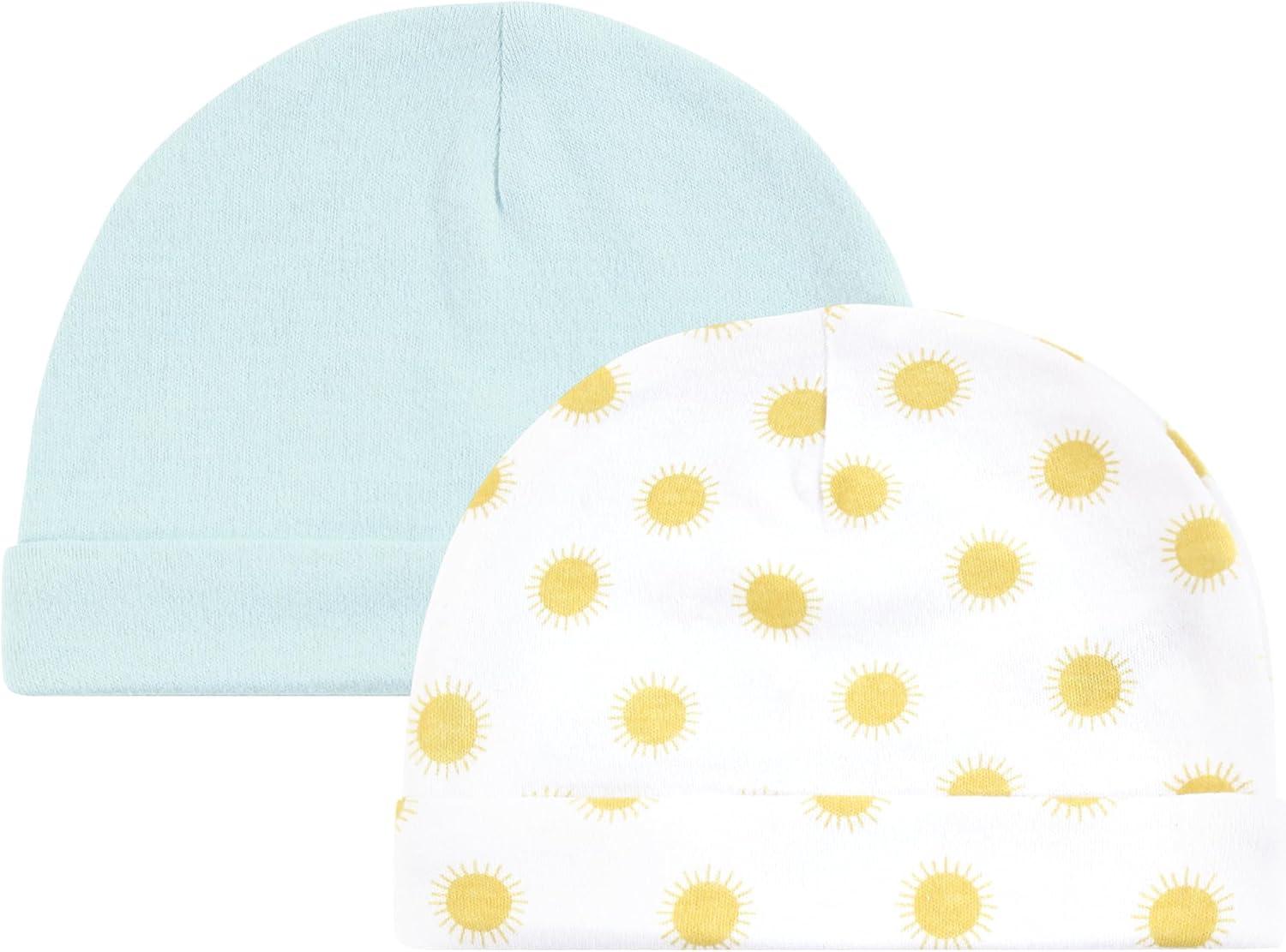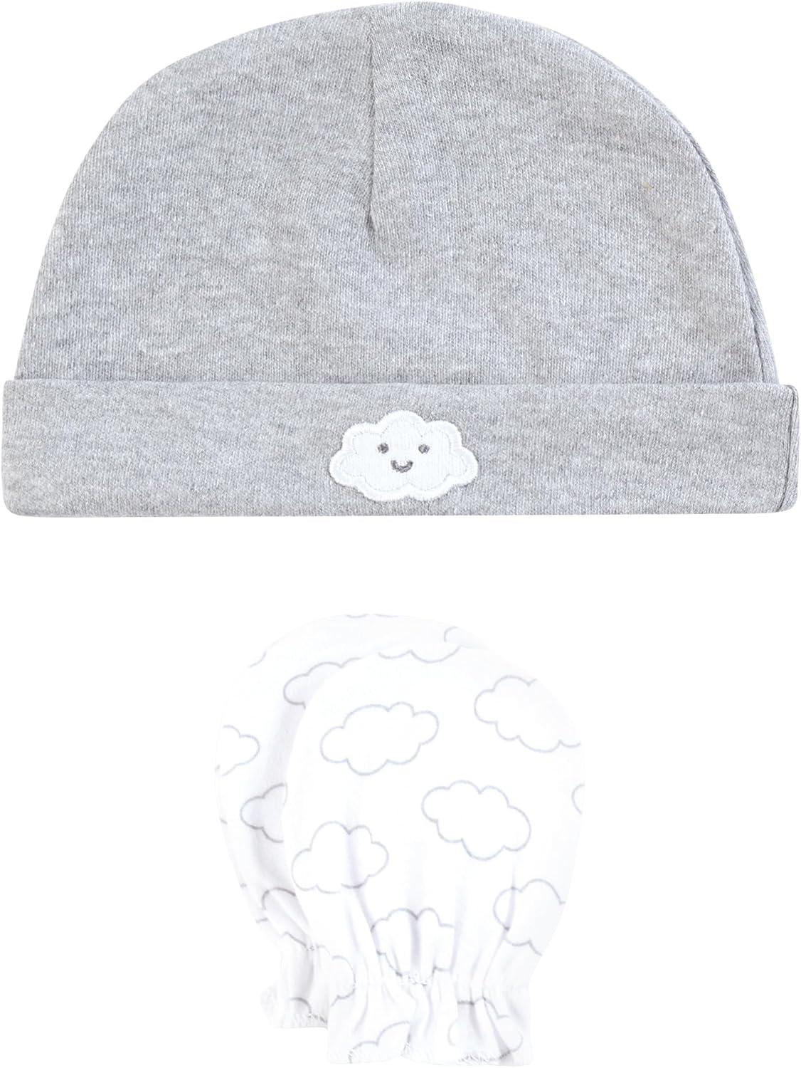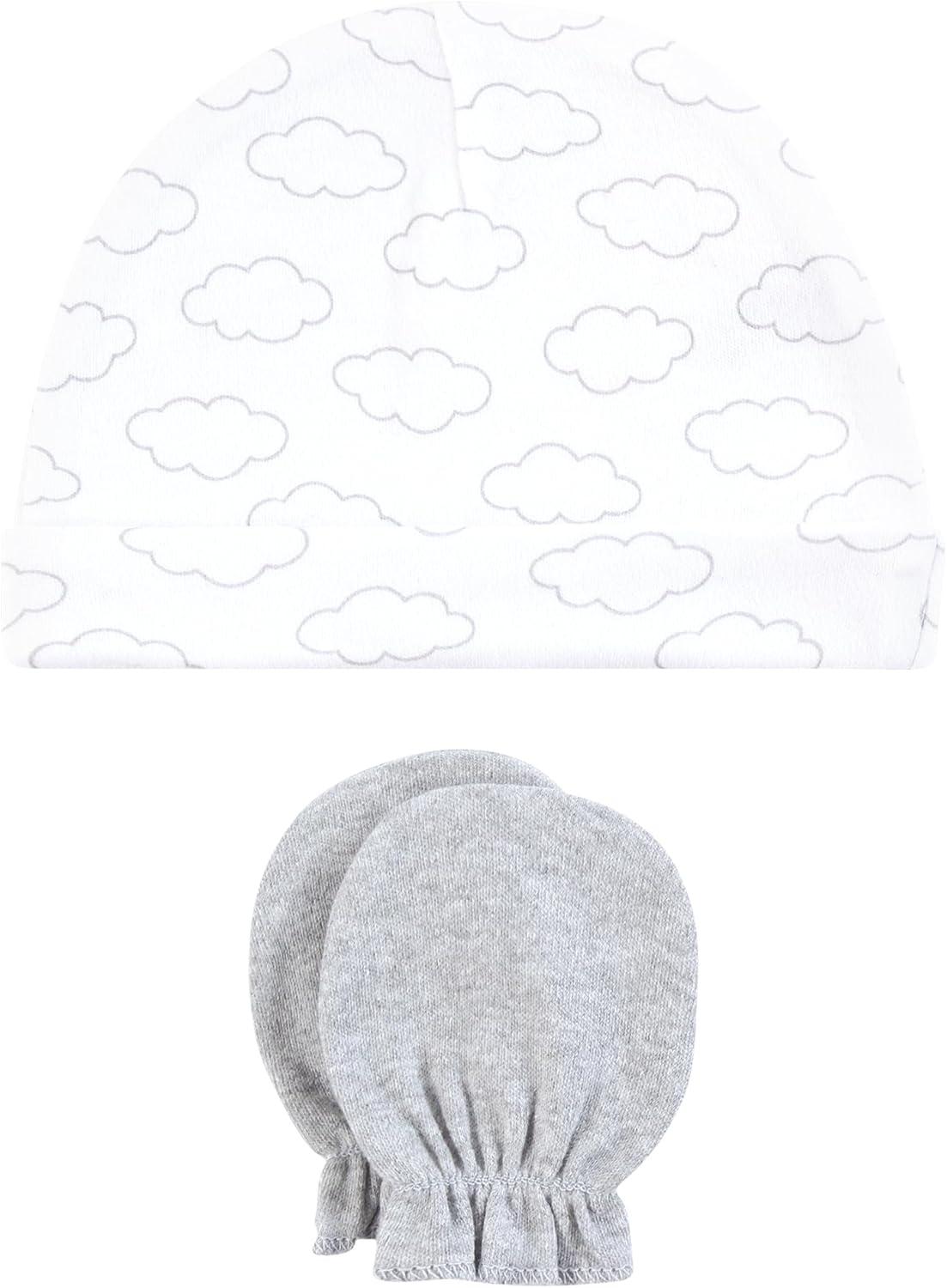 Hudson Baby Unisex Baby Cotton Cap and Scratch Mitten Set(Sunshine and Clouds)