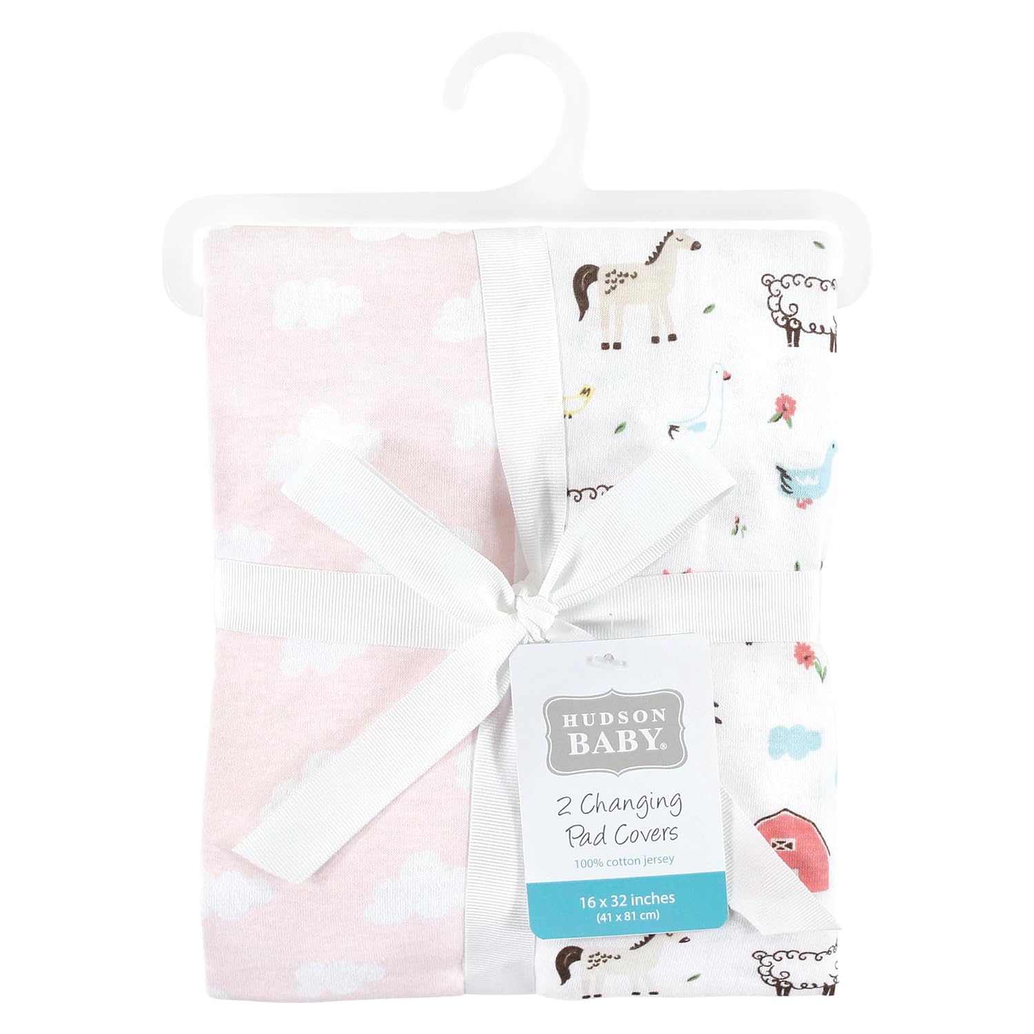 Hudson Baby cotton fitted changing pad cover is the perfect nursery accessory. Our changing pad covers are made with super soft, 100% cotton which is soft and gentle on babies skin. They are durable enough for wash after wash yet soft enough on baby's skin. Fitted elastic around the edges ensures our changing pad cover will stay on. Adorable prints and designs to fit any nursery decor. This cover is standard size to fit most changing pads.