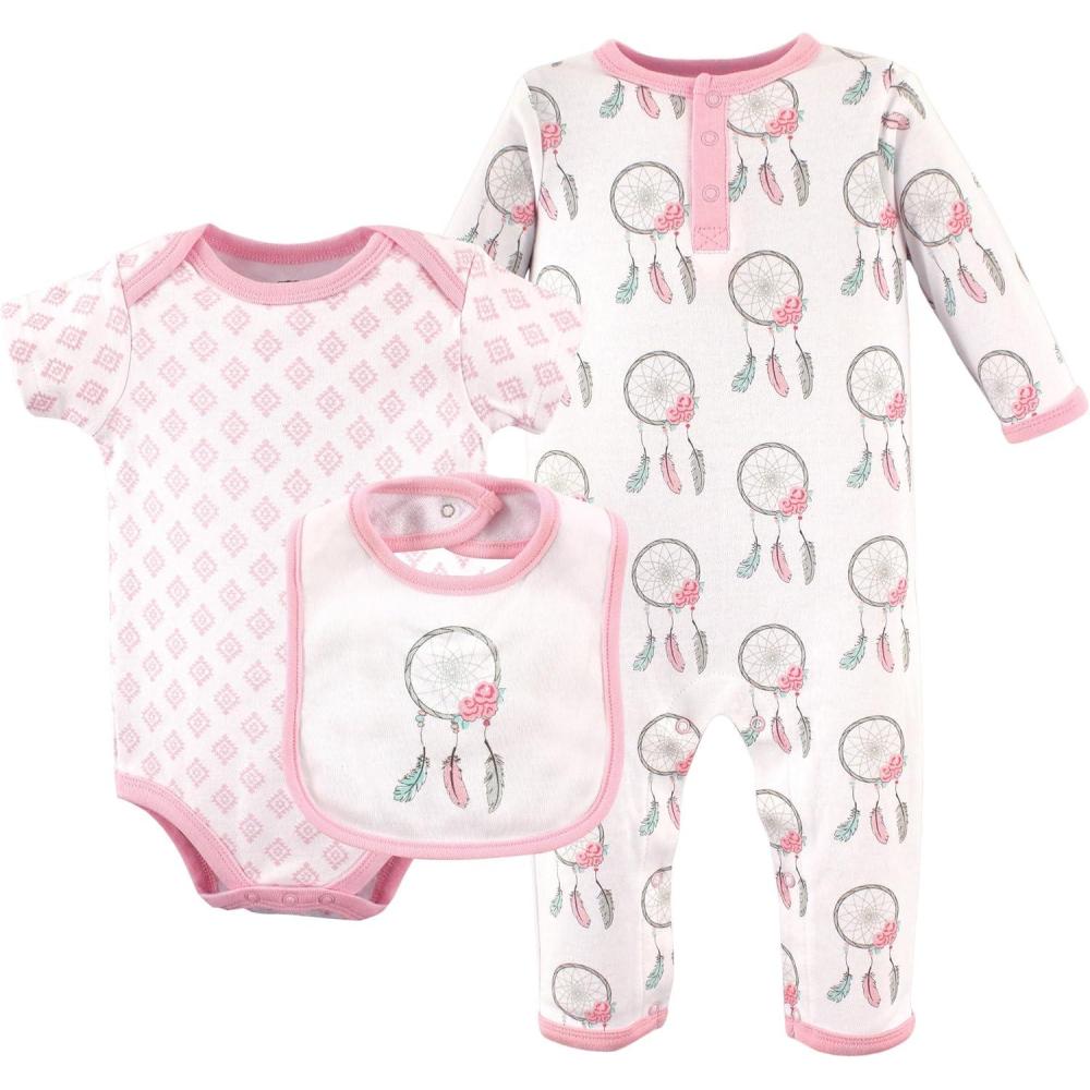 Hudson Baby Unisex BabyCotton Coverall, Bodysuit and Bib Set