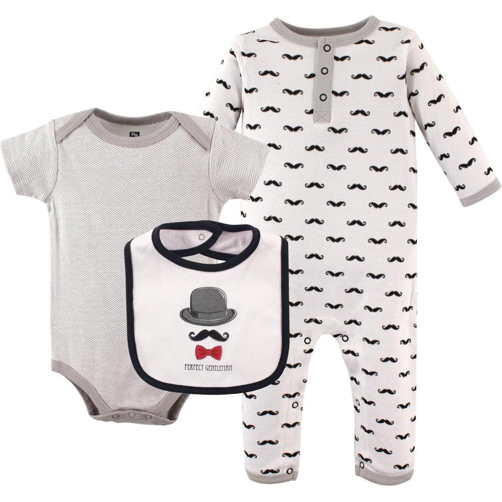 Hudson Baby Unisex BabyCotton Coverall, Bodysuit and Bib Set
