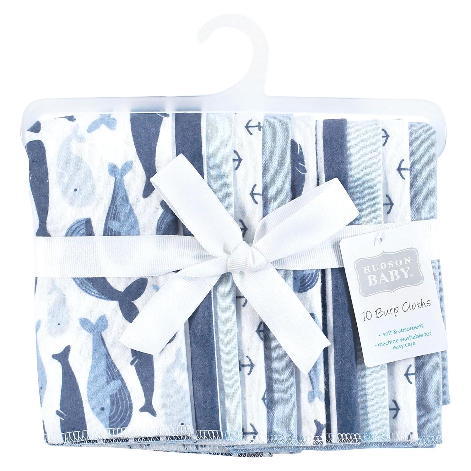 Hudson Baby Unisex Baby Cotton Flannel Burp Cloths 10-Pack, Cute Whales, One Size