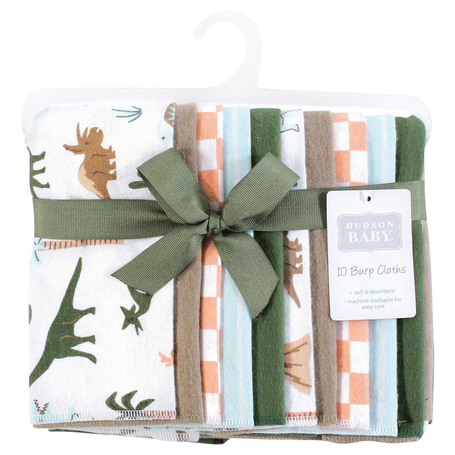 Hudson Baby Unisex Baby Cotton Flannel Burp Cloths 10-Pack, Dino Friends, One Size(Retro Dinosaur)