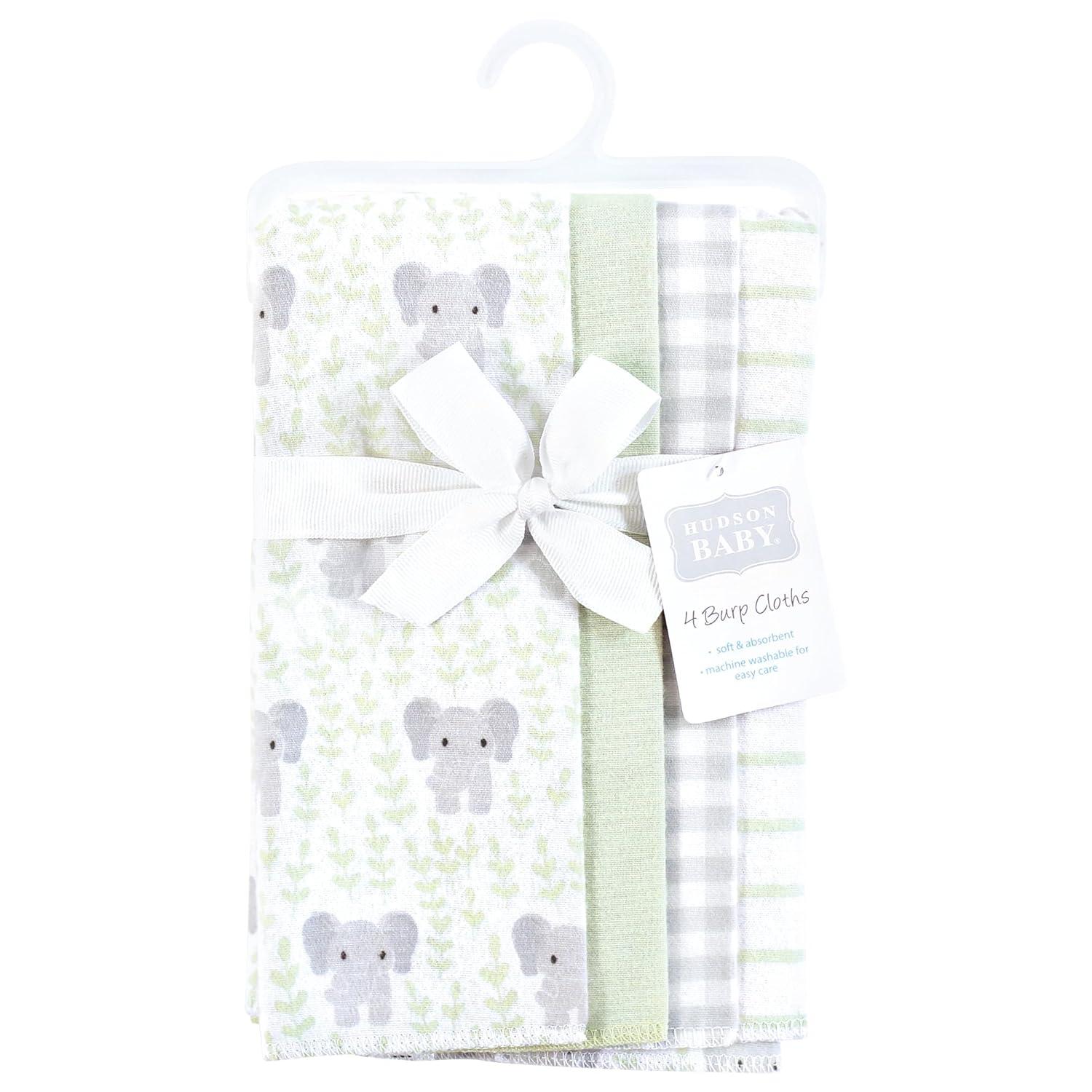 Hudson Baby Unisex Baby Cotton Flannel Burp Cloths 4-Pack, Blue Cosmos, One Size(Leafy Elephant)