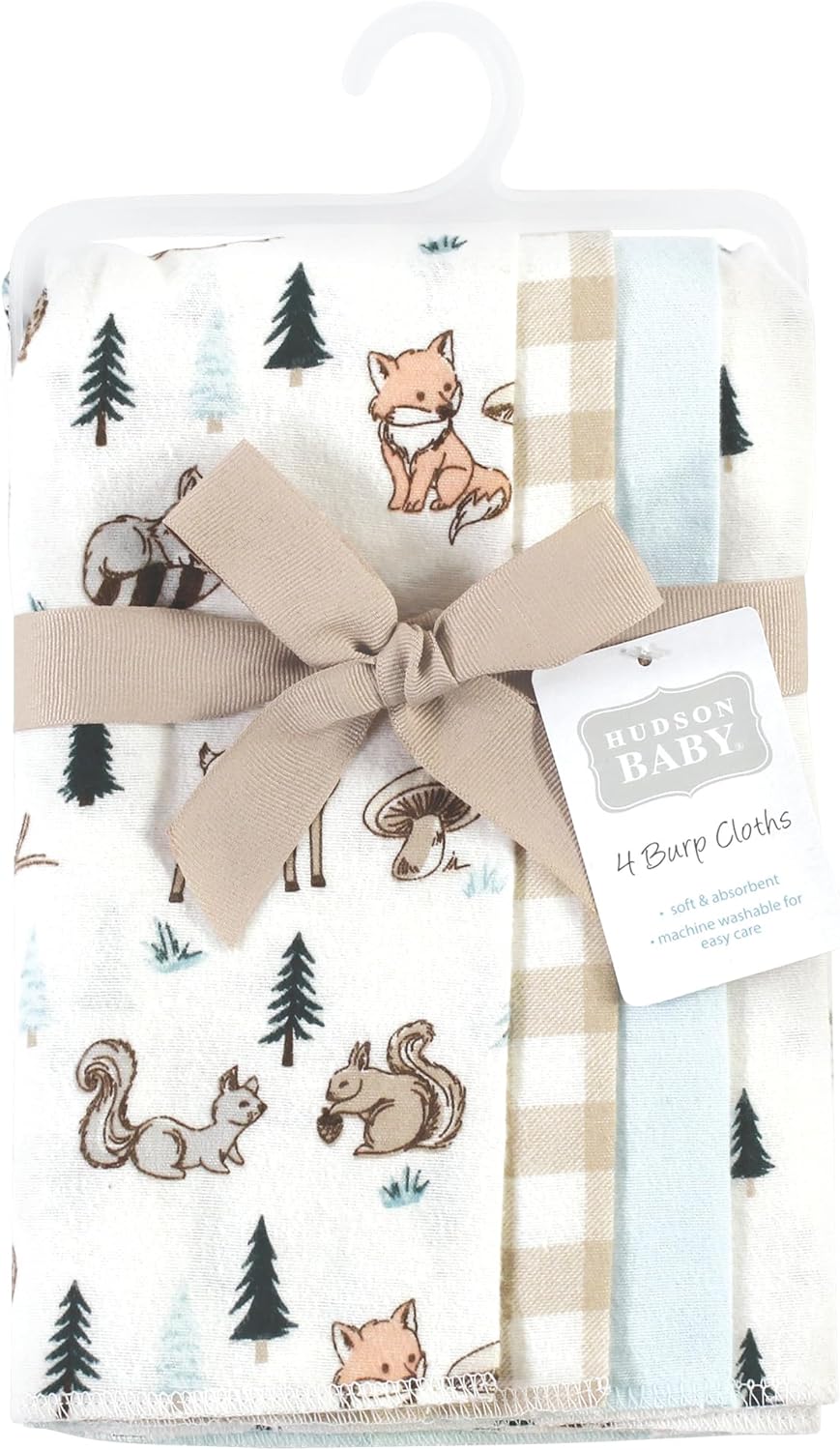 Hudson Baby Unisex Baby Cotton Flannel Burp Cloths 4-Pack, Farm Friends Grey, One Size(One Size Girl Woodland Pals 10-pack)