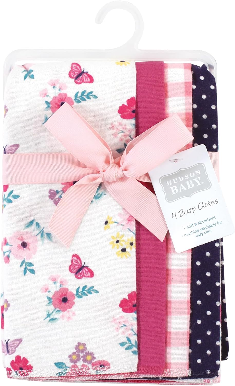 Hudson Baby Unisex Baby Cotton Flannel Burp Cloths 4-Pack, Farm Friends Grey, One Size(One Size Butterfly Floral 4-pack)