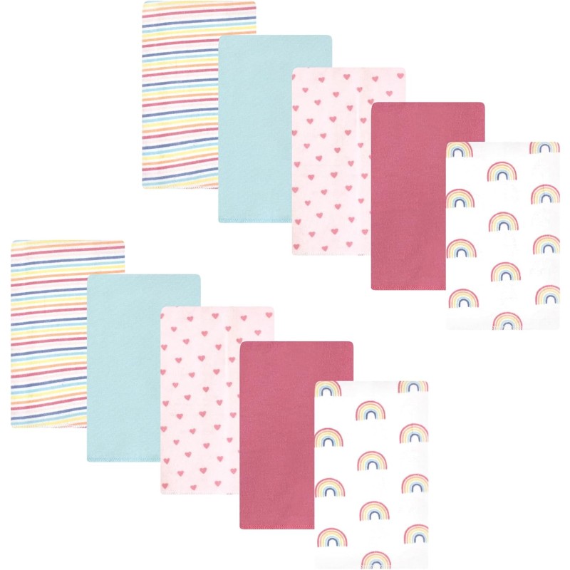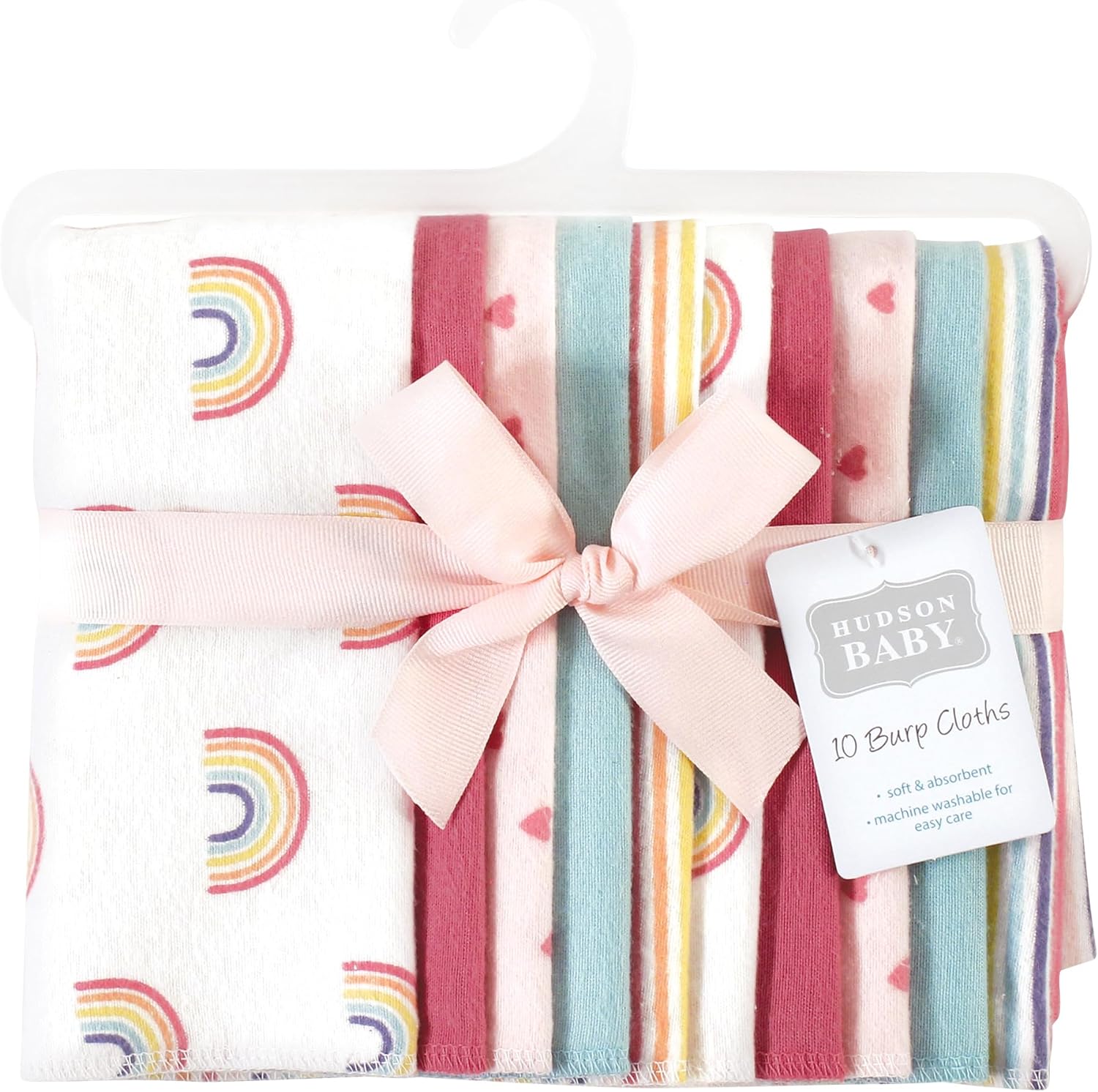 Hudson Baby flannel burp cloths feature multiple layers of fabric to help clean up the messes and spills that you are bound to encounter with your new baby. Our burp cloths are soft and gentle when used on baby's skin and help protect parent's clothes from drool and spills while feeding, burping, and snuggling baby. Our burp cloths will come in handy everyday, whether you are hanging out at home, traveling, or leaving your little one at daycare.
