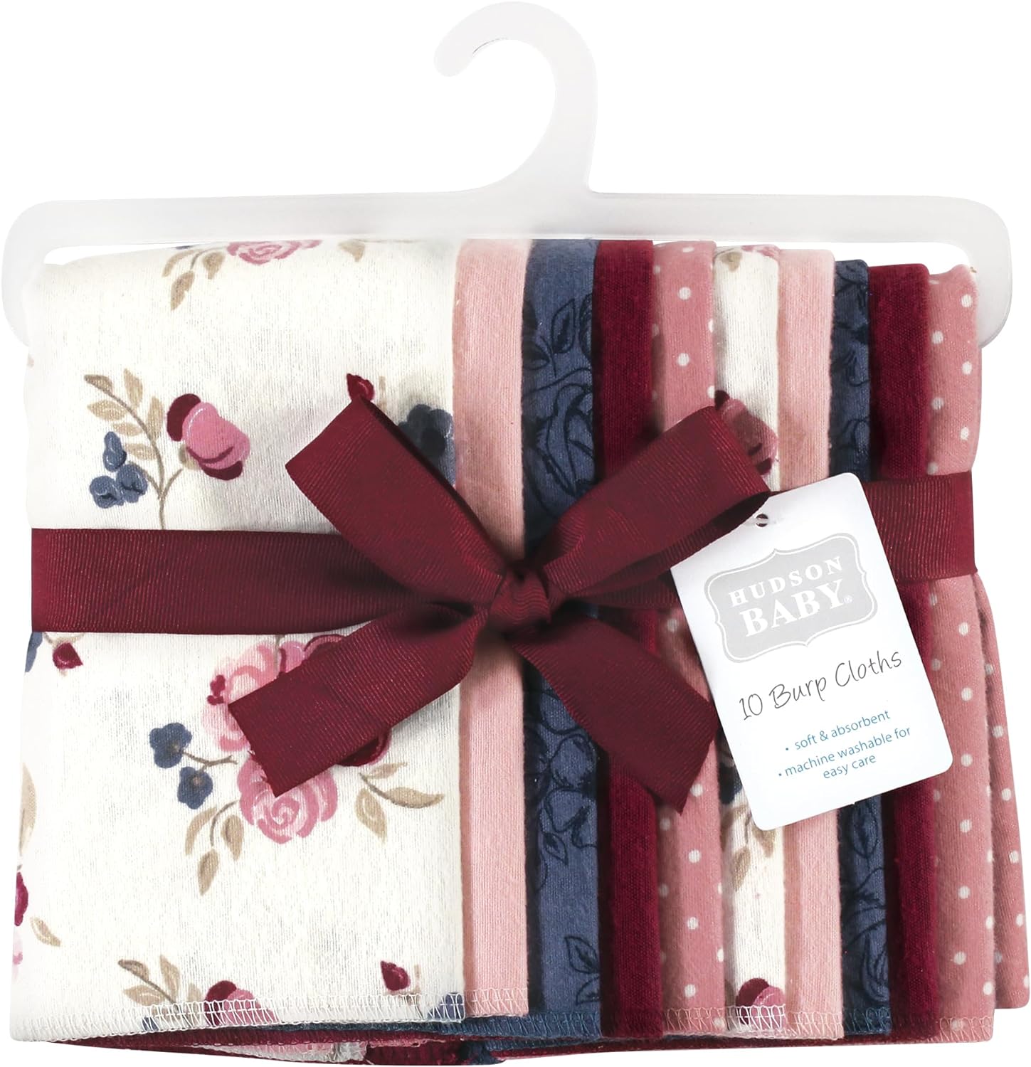 Hudson Baby Unisex Baby Cotton Flannel Burp Cloths 4-Pack, Farm Friends Grey, One Size(One Size Dusty Rose Floral 10-pack)