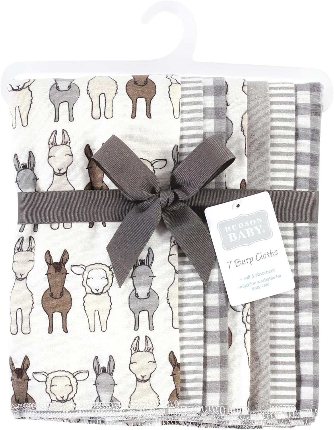 Hudson Baby Unisex Baby Cotton Flannel Burp Cloths 4-Pack, Farm Friends Grey, One Size(One Size Farm Friends Cream 7-pack)
