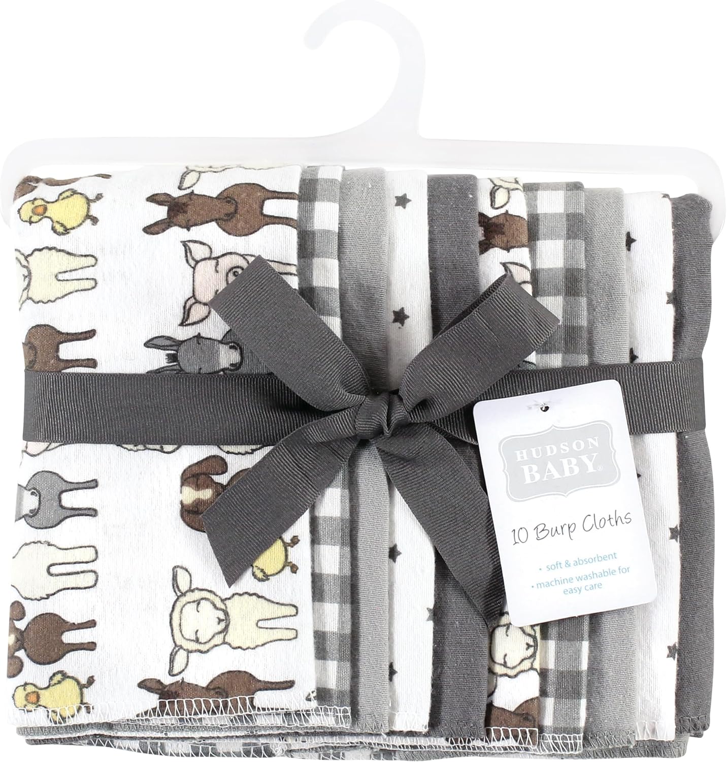 Hudson Baby Unisex Baby Cotton Flannel Burp Cloths 4-Pack, Farm Friends Grey, One Size(One Size Farm Friends Grey 10-pack)