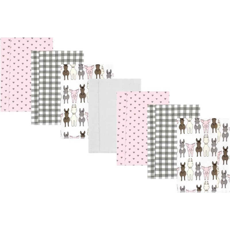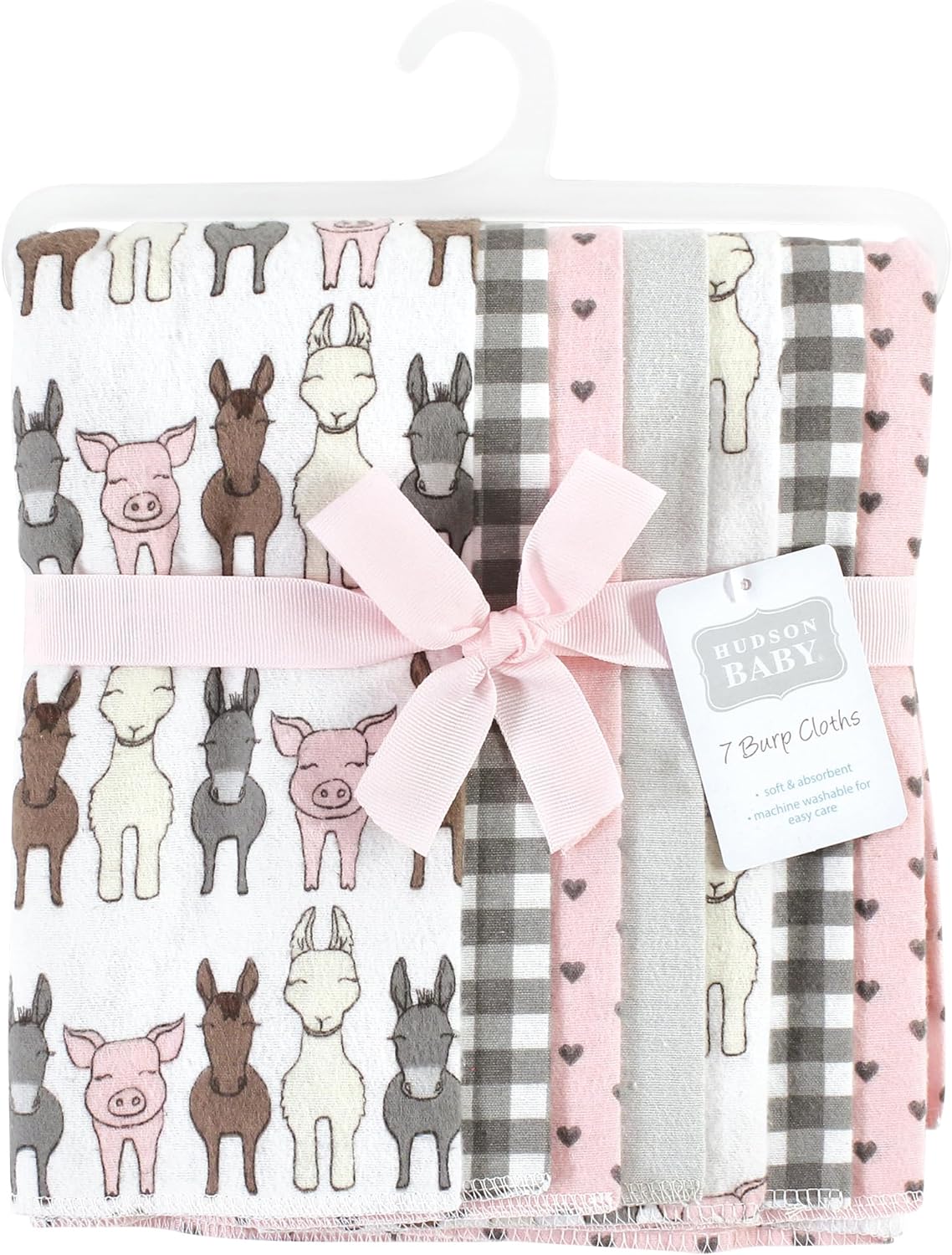 Hudson Baby Unisex Baby Cotton Flannel Burp Cloths 4-Pack, Farm Friends Grey, One Size(One Size Farm Friends Pink 7-pack)