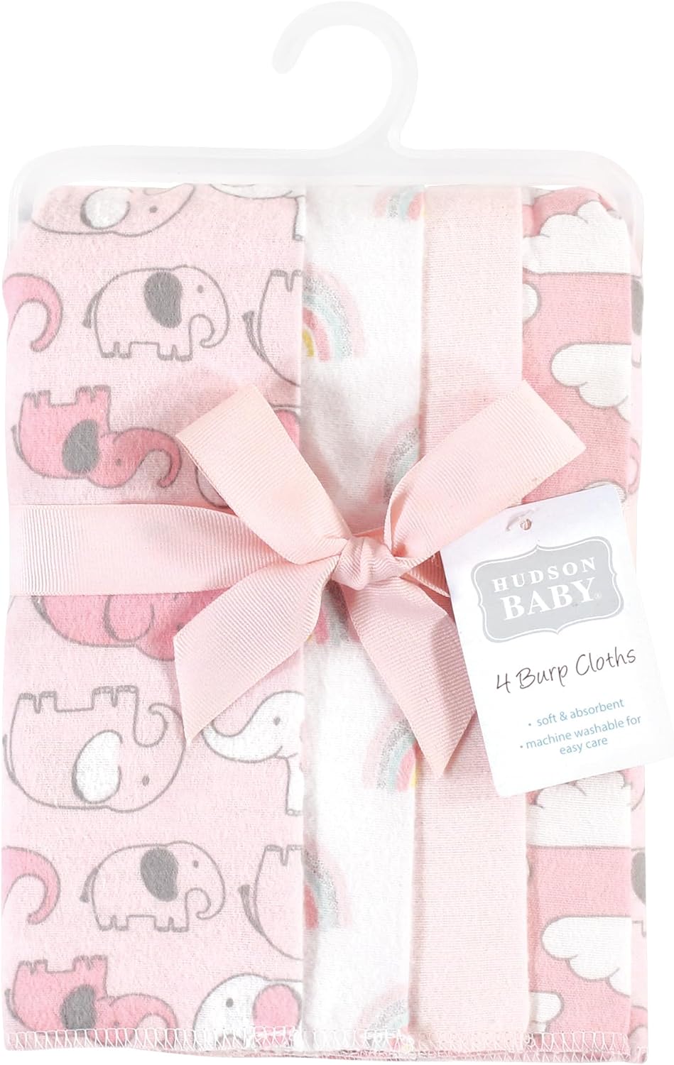 Hudson Baby Unisex Baby Cotton Flannel Burp Cloths 4-Pack, Farm Friends Grey, One Size(One Size Girl New Elephant 4-pack)