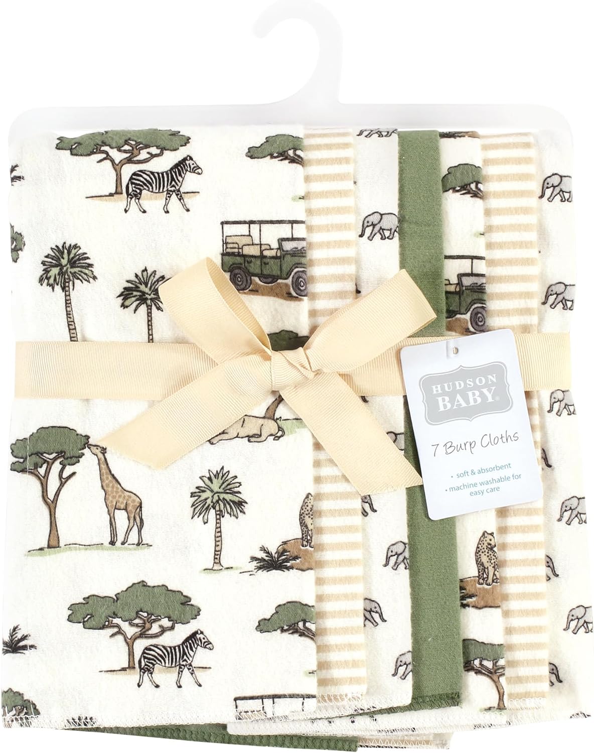 Hudson Baby flannel burp cloths feature multiple layers of fabric to help clean up the messes and spills that you are bound to encounter with your new baby. Our burp cloths are soft and gentle when used on baby's skin and help protect parent's clothes from drool and spills while feeding, burping, and snuggling baby. Our burp cloths will come in handy everyday, whether you are hanging out at home, traveling, or leaving your little one at daycare.