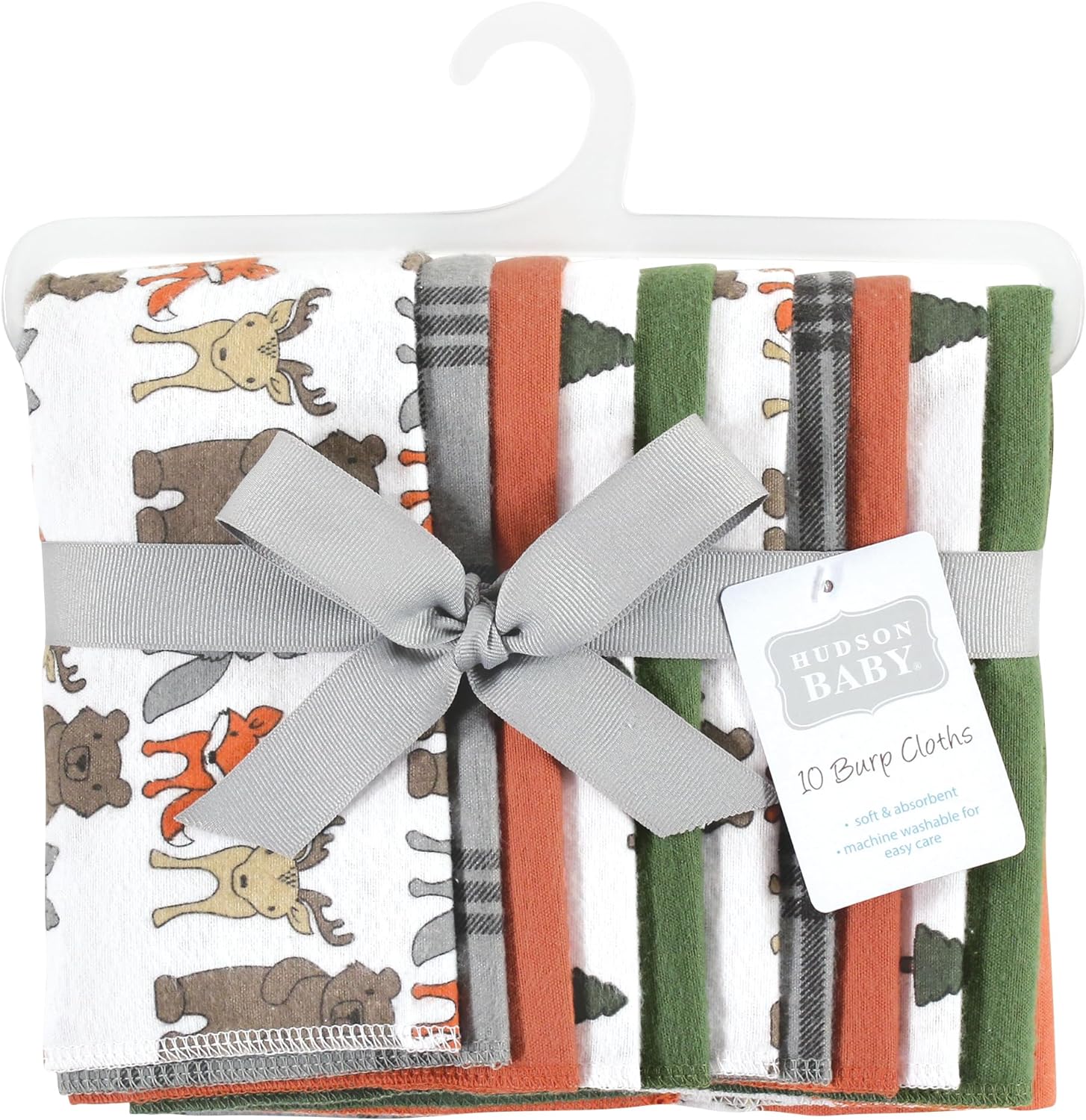 Hudson Baby Unisex Baby Cotton Flannel Burp Cloths 4-Pack, Farm Friends Grey, One Size(One Size Wild Forest 10-pack)