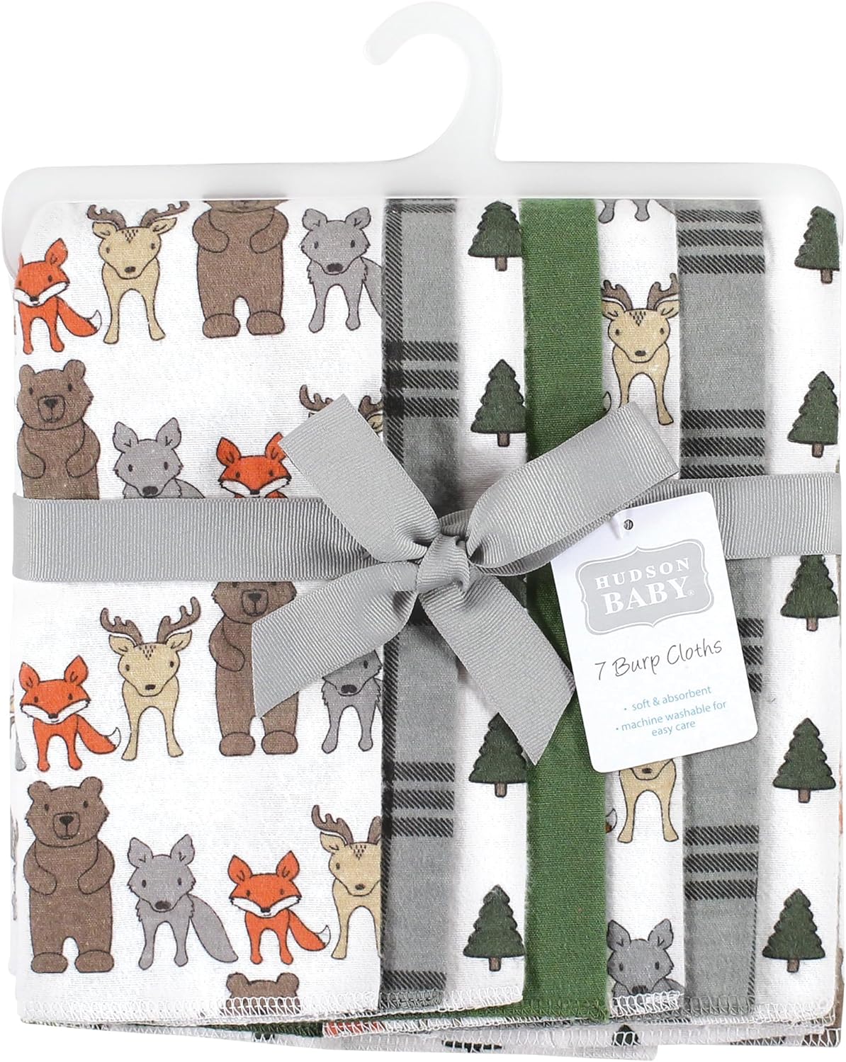 Hudson Baby Unisex Baby Cotton Flannel Burp Cloths 4-Pack, Farm Friends Grey, One Size(One Size Wild Forest 7-pack)