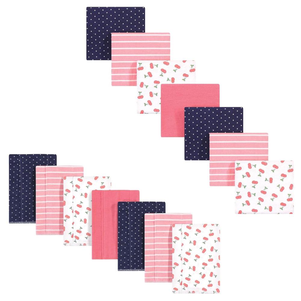 Hudson Baby Unisex Baby Cotton Flannel Burp Cloths and Receiving Blankets, 14-Piece, Narwhal, One Size(Cherry)