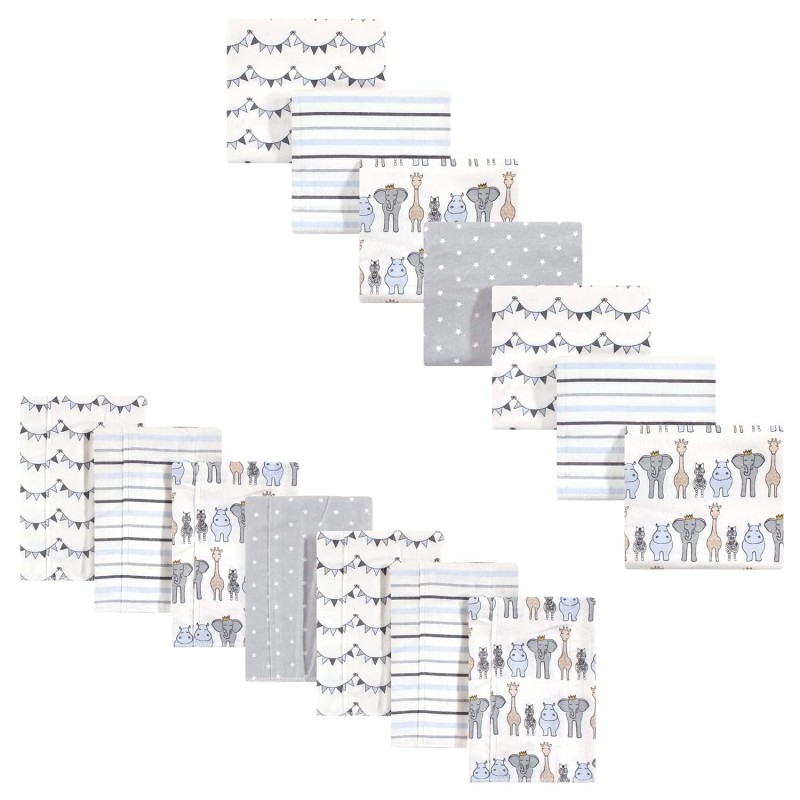 Hudson Baby Unisex Baby Cotton Flannel Burp Cloths and Receiving Blankets, 14-Piece, Space, One Size(One Size Royal Safari)