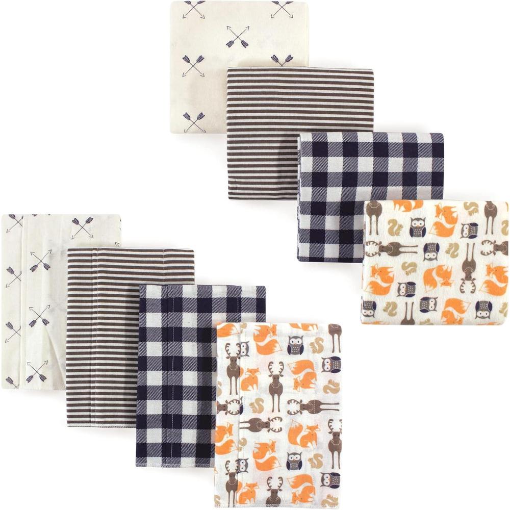 Hudson Baby Unisex Baby Cotton Flannel Burp Cloths and Receiving Blankets, 8-Piece, Mustache Hat, One Size(Forest)