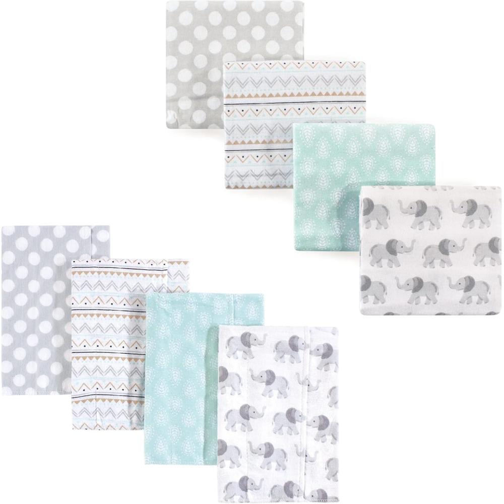 Hudson Baby Unisex Baby Cotton Flannel Burp Cloths and Receiving Blankets, 8-Piece, Mustache Hat, One Size(Gray Elephant)