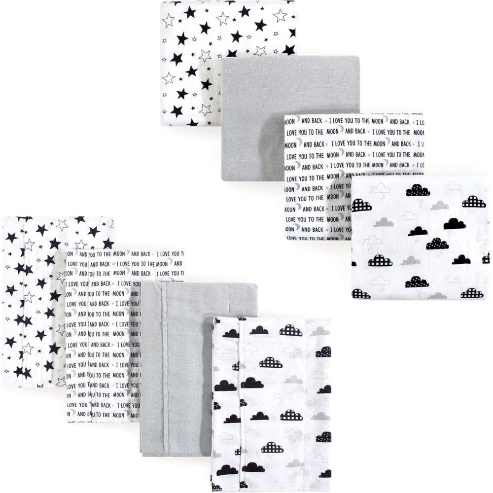 Hudson Baby Unisex Baby Cotton Flannel Burp Cloths and Receiving Blankets, 8-Piece, Mustache Hat, One Size(Moon and Back)