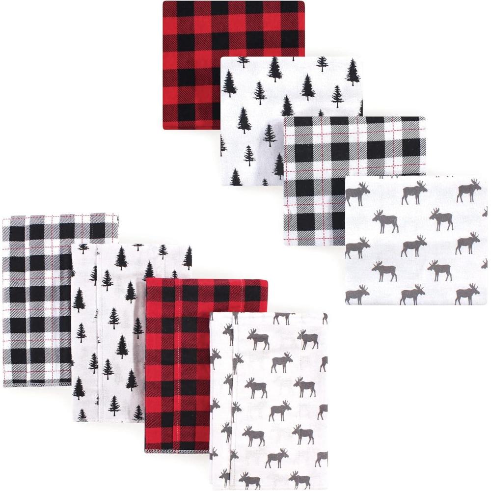 Hudson Baby Unisex Baby Cotton Flannel Burp Cloths and Receiving Blankets, 8-Piece, Mustache Hat, One Size(Moose)