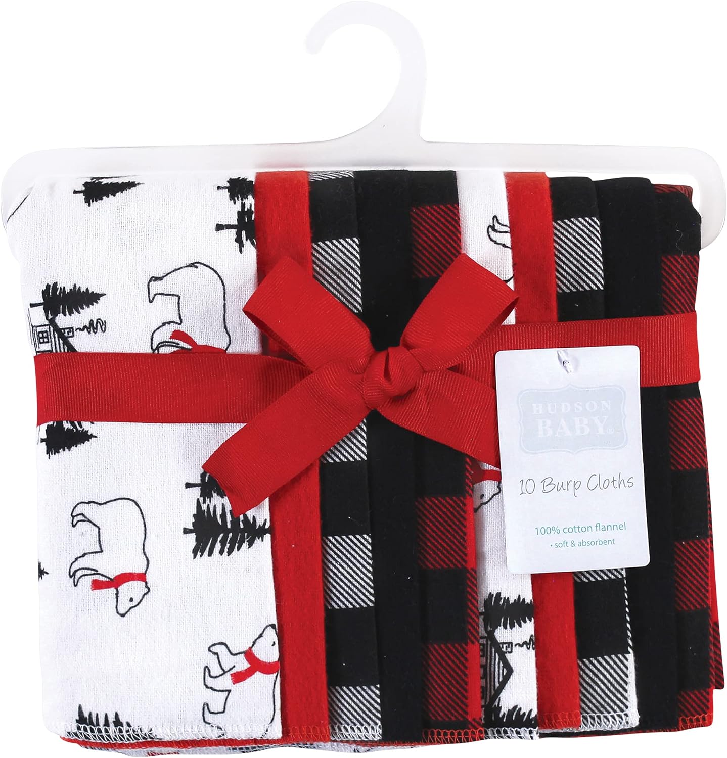 Hudson Baby Unisex Baby Cotton Flannel Burp Cloths, Bee, One Size(Buffalo Plaid Bear One Size)