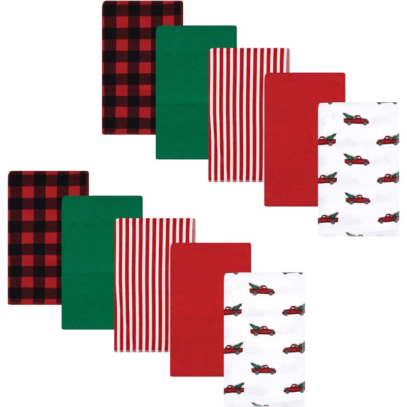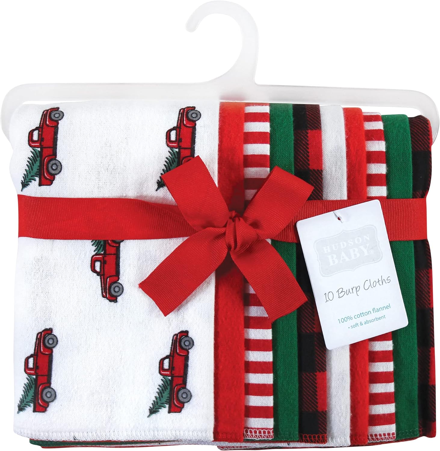 Hudson Baby Unisex Baby Cotton Flannel Burp Cloths, Bee, One Size(Christmas Tree Truck One Size)