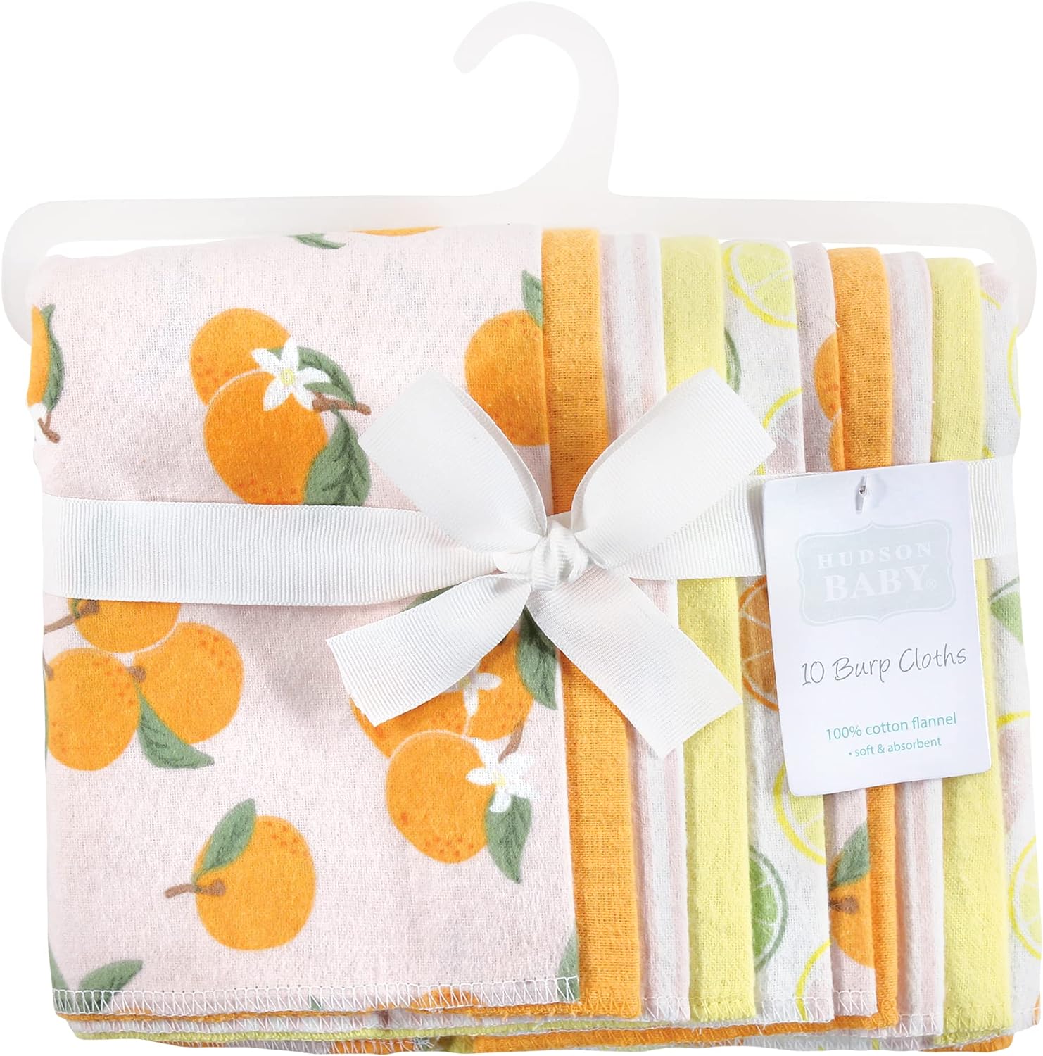 Hudson Baby Unisex Baby Cotton Flannel Burp Cloths, Bee, One Size(Citrus Orange One Size)