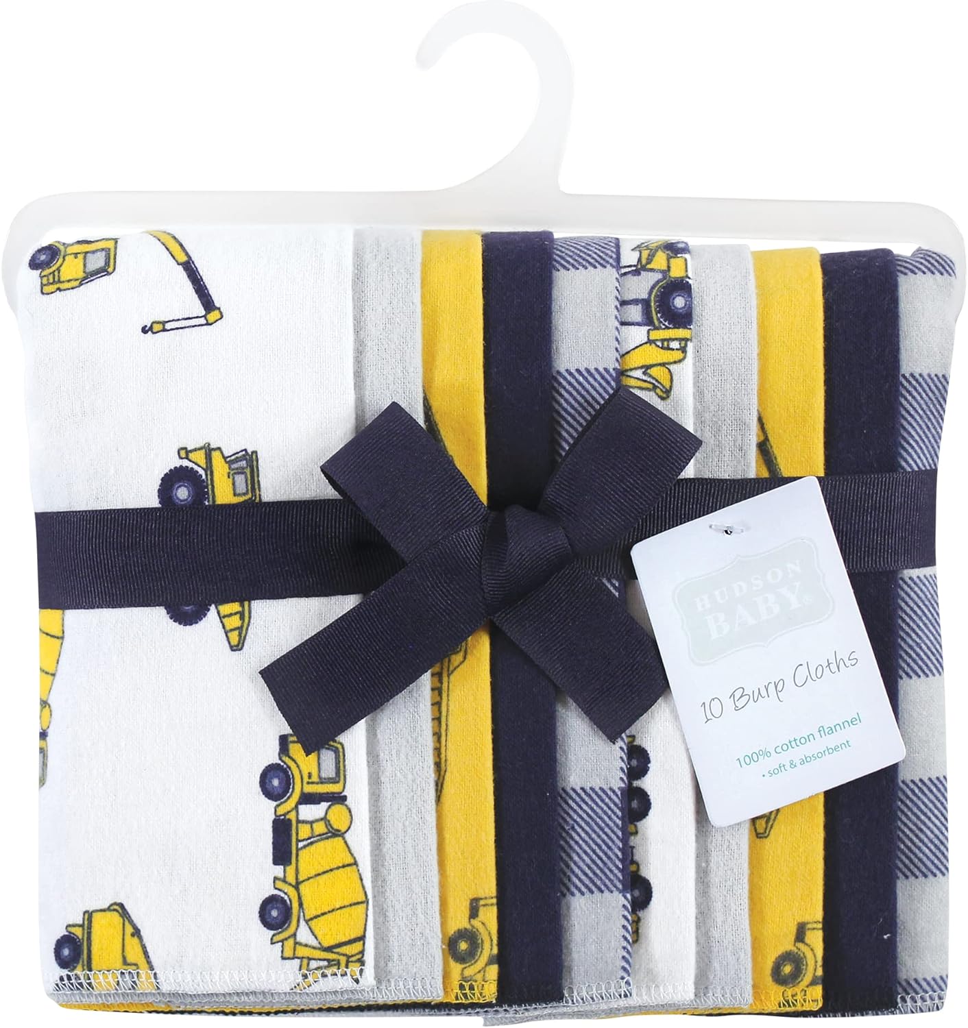 Hudson Baby Unisex Baby Cotton Flannel Burp Cloths, Bee, One Size(Construction One Size)