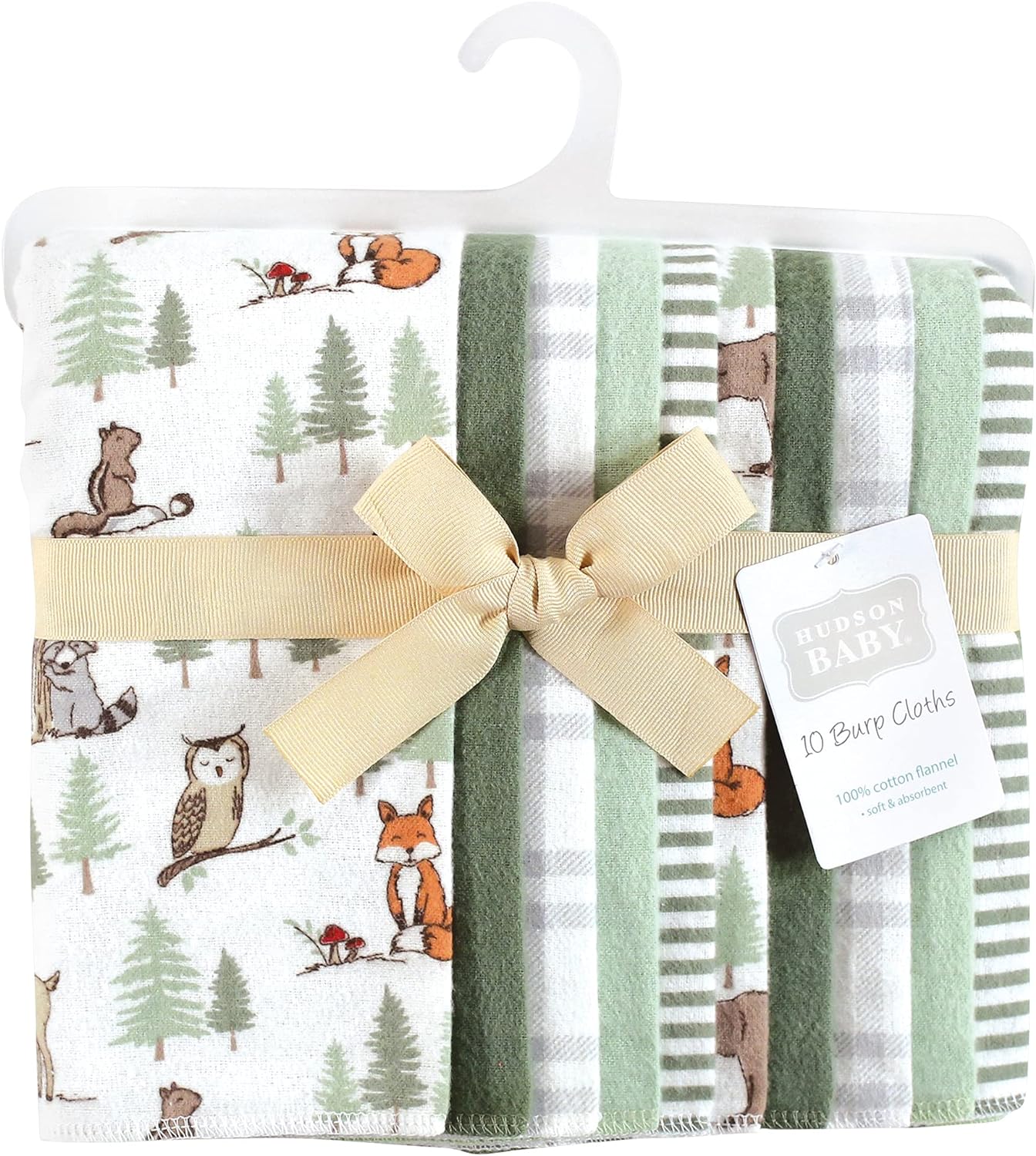 Hudson Baby Unisex Baby Cotton Flannel Burp Cloths, Bee, One Size(Forest Animals One Size)