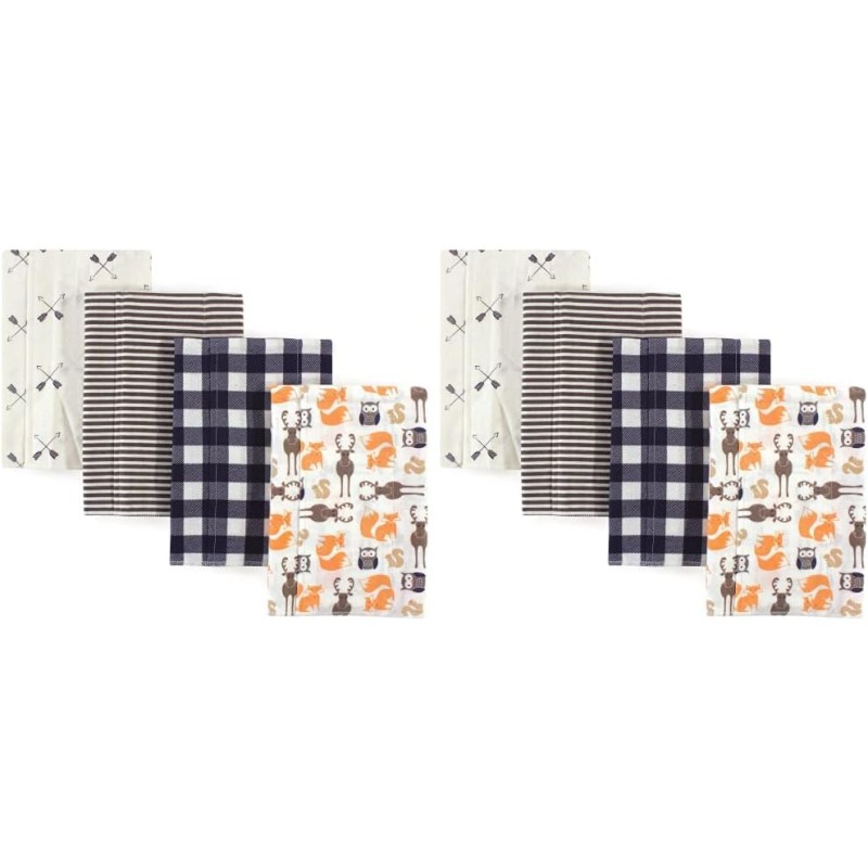 Hudson Baby flannel burp cloths feature multiple layers of fabric to help clean up the messes and spills that you are bound to encounter with your new baby. Our burp cloths are soft and gentle when used on baby's skin and help protect parent's clothes from drool and spills while feeding, burping, and snuggling baby. Our burp cloths will come in handy everyday, whether you are hanging out at home, traveling, or leaving your little one at daycare.