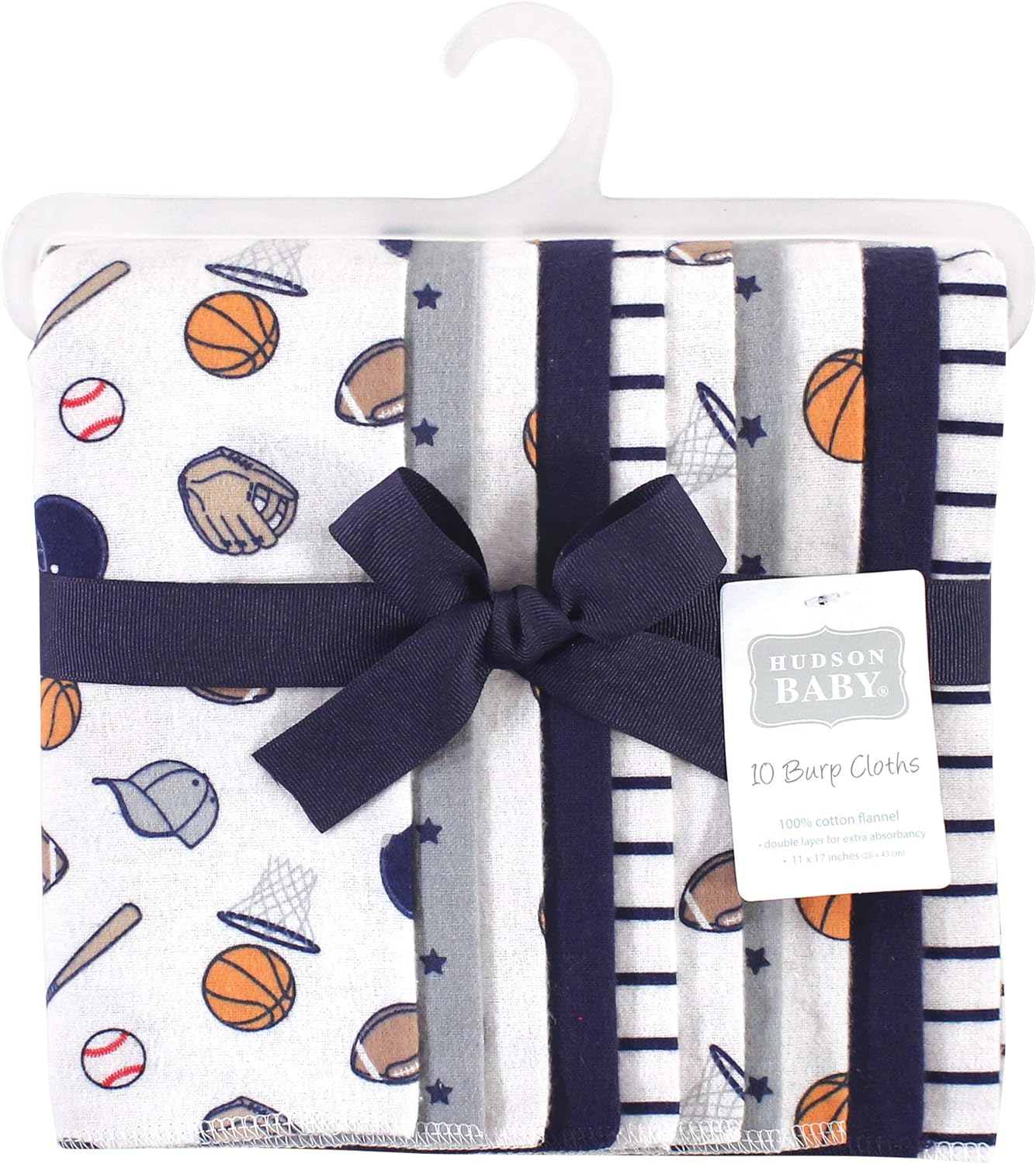 Hudson Baby Unisex Baby Cotton Flannel Burp Cloths, Bee, One Size(Sports One Size)