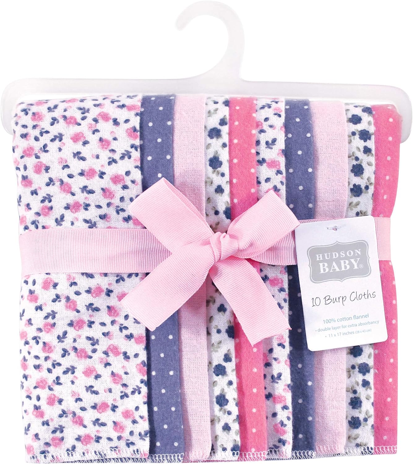 Hudson Baby flannel burp cloths feature multiple layers of fabric to help clean up the messes and spills that you are bound to encounter with your new baby. Our burp cloths are soft and gentle when used on baby's skin and help protect parent's clothes from drool and spills while feeding, burping, and snuggling baby. Our burp cloths will come in handy everyday, whether you are hanging out at home, traveling, or leaving your little one at daycare.