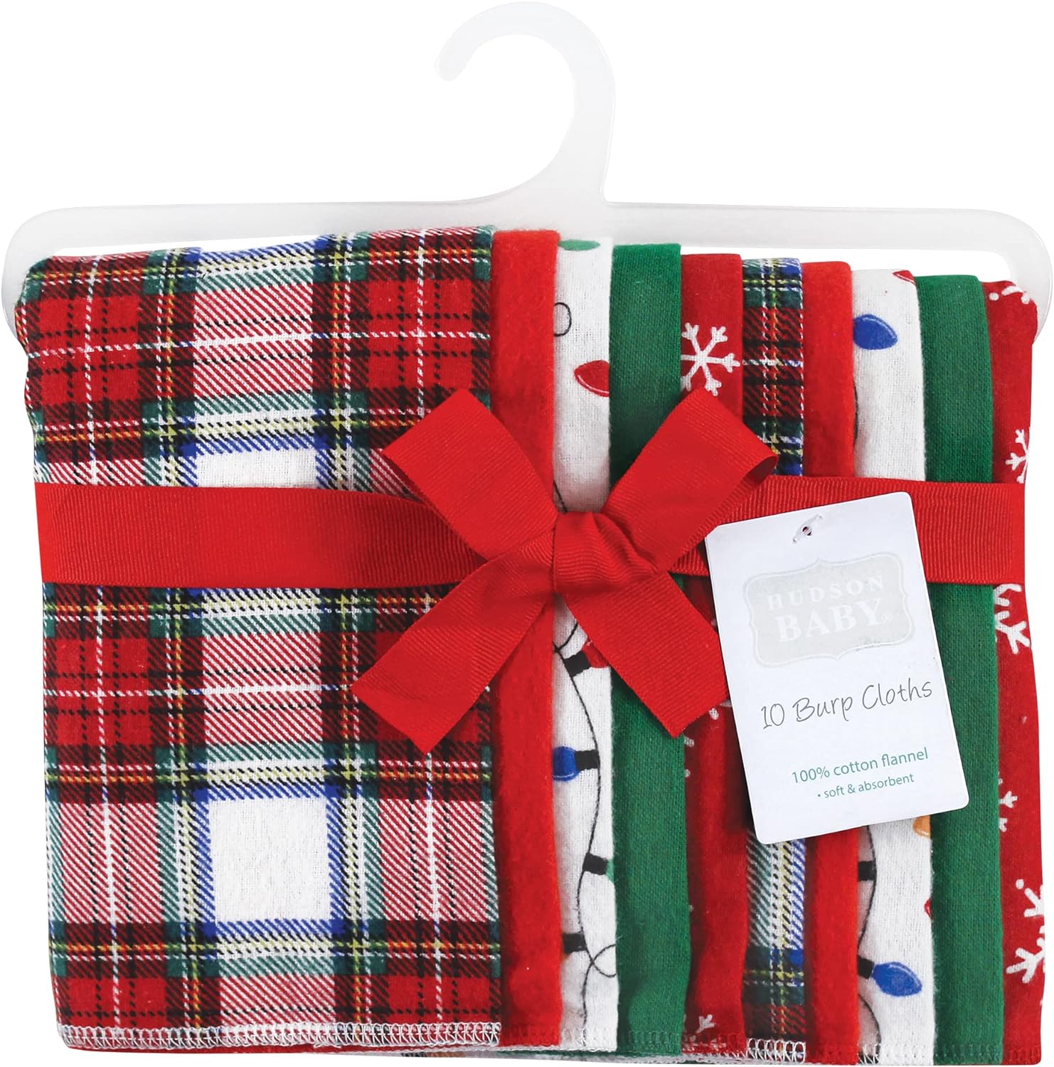 Hudson Baby Unisex Baby Cotton Flannel Burp Cloths, Bee, One Size(White Tartan One Size)