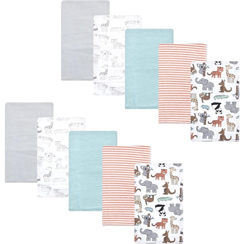 Hudson Baby flannel burp cloths feature multiple layers of fabric to help clean up the messes and spills that you are bound to encounter with your new baby. Our burp cloths are soft and gentle when used on baby's skin and help protect parent's clothes from drool and spills while feeding, burping, and snuggling baby. Our burp cloths will come in handy everyday, whether you are hanging out at home, traveling, or leaving your little one at daycare.