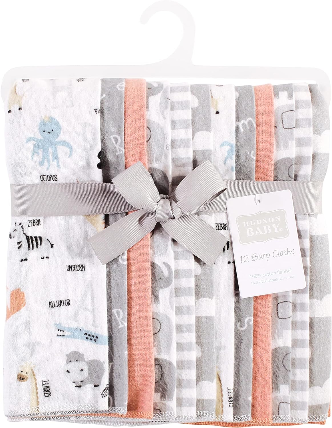 Hudson Baby Unisex Baby Cotton Flannel Burp Cloths Bundle, Girl Woodland Pals, One Size(One Size Alphabet)