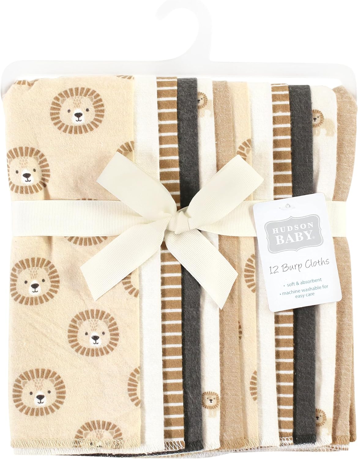 Hudson Baby Unisex Baby Cotton Flannel Burp Cloths Bundle, Girl Woodland Pals, One Size(One Size Brave Lion)
