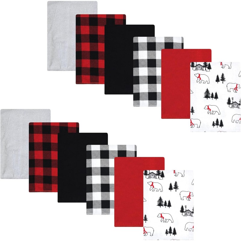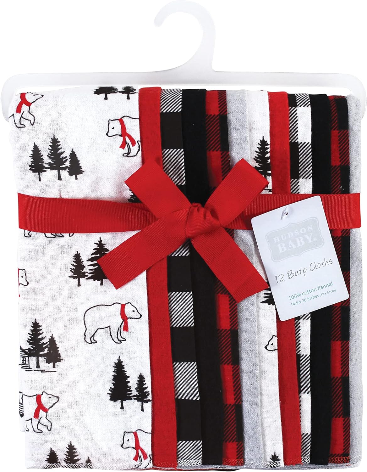 Hudson Baby Unisex Baby Cotton Flannel Burp Cloths Bundle, Girl Woodland Pals, One Size(One Size Buffalo Plaid Bear)