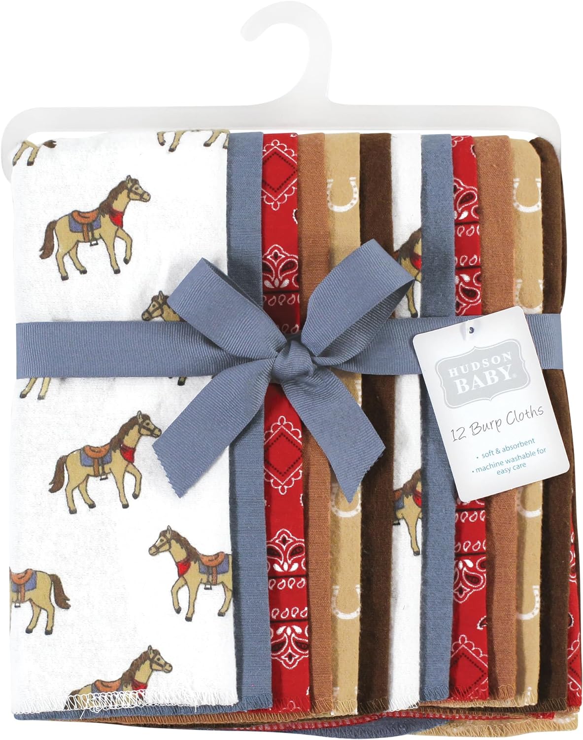 Hudson Baby Unisex Baby Cotton Flannel Burp Cloths Bundle, Girl Woodland Pals, One Size(One Size Cowboy)