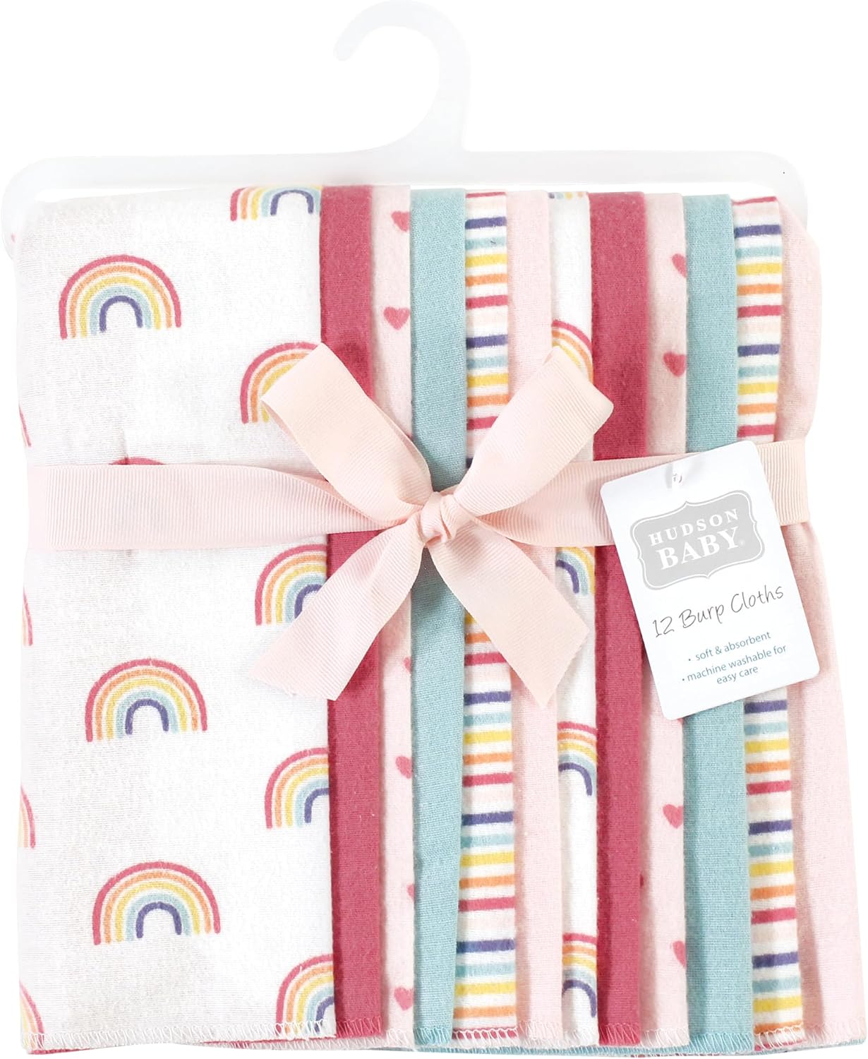 Hudson Baby Unisex Baby Cotton Flannel Burp Cloths Bundle, Girl Woodland Pals, One Size(One Size Creative Rainbow)