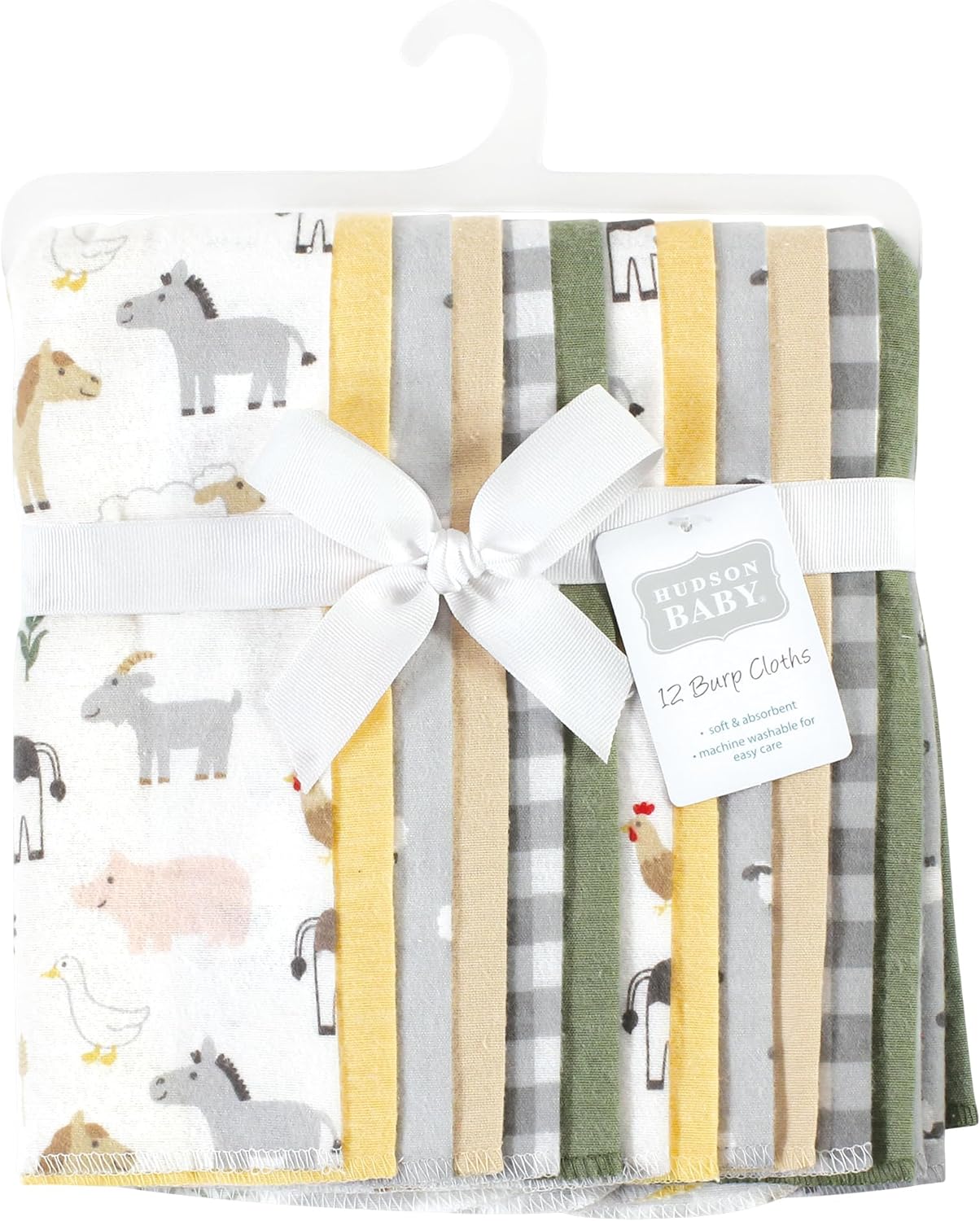 Hudson Baby Unisex Baby Cotton Flannel Burp Cloths Bundle, Girl Woodland Pals, One Size(One Size Cute Farm)