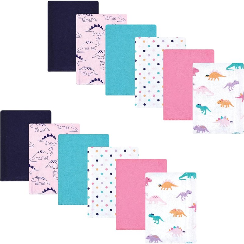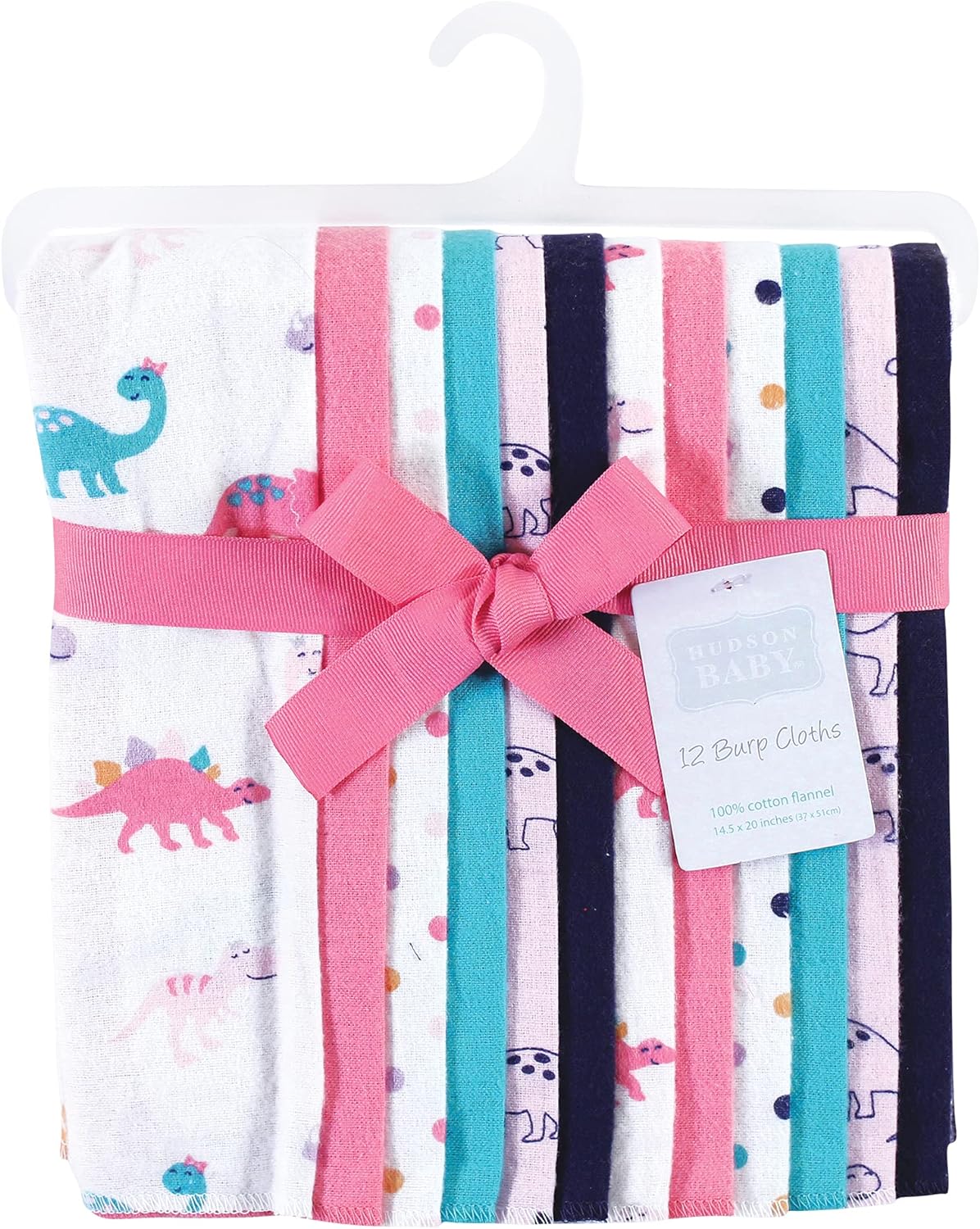 Hudson Baby Unisex Baby Cotton Flannel Burp Cloths Bundle, Girl Woodland Pals, One Size(One Size Cuteasaurus)