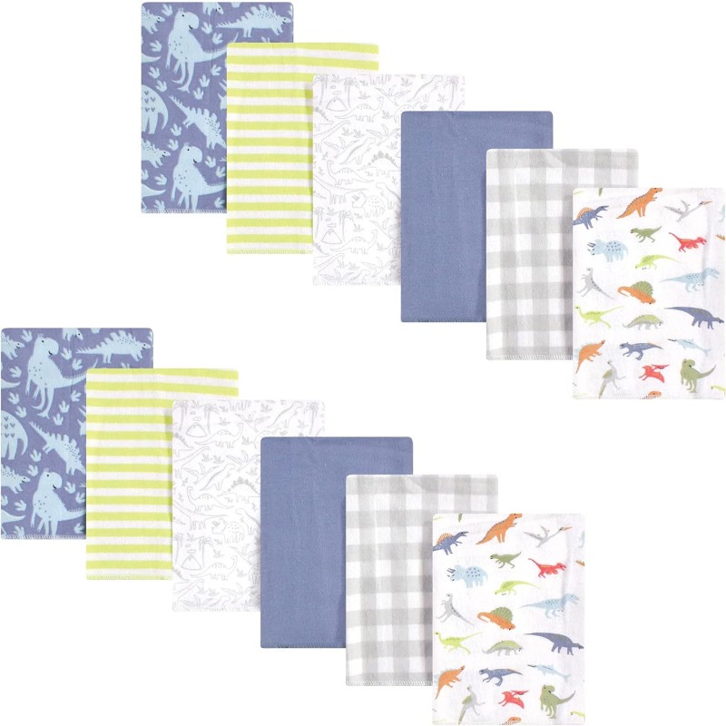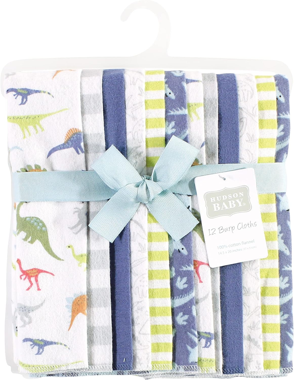 Hudson Baby Unisex Baby Cotton Flannel Burp Cloths Bundle, Girl Woodland Pals, One Size(One Size Dino)