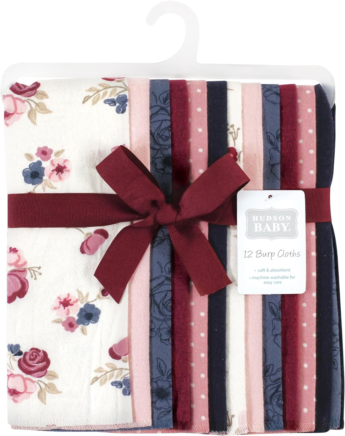 Hudson Baby Unisex Baby Cotton Flannel Burp Cloths Bundle, Girl Woodland Pals, One Size(One Size Dusty Rose Floral)