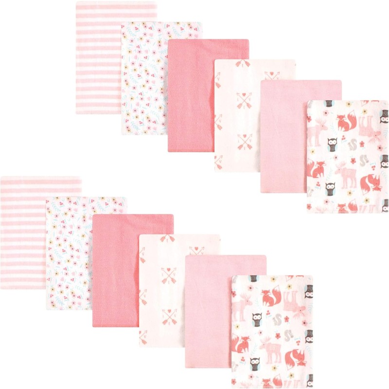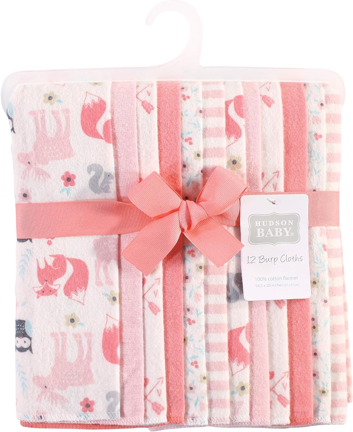 Hudson Baby Unisex Baby Cotton Flannel Burp Cloths Bundle, Girl Woodland Pals, One Size(One Size Girl Safari)