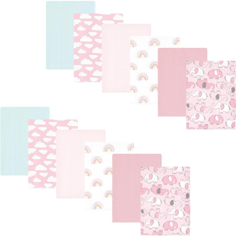 Hudson Baby Unisex Baby Cotton Flannel Burp Cloths Bundle, Girl Woodland Pals, One Size(One Size Girl New Elephant)