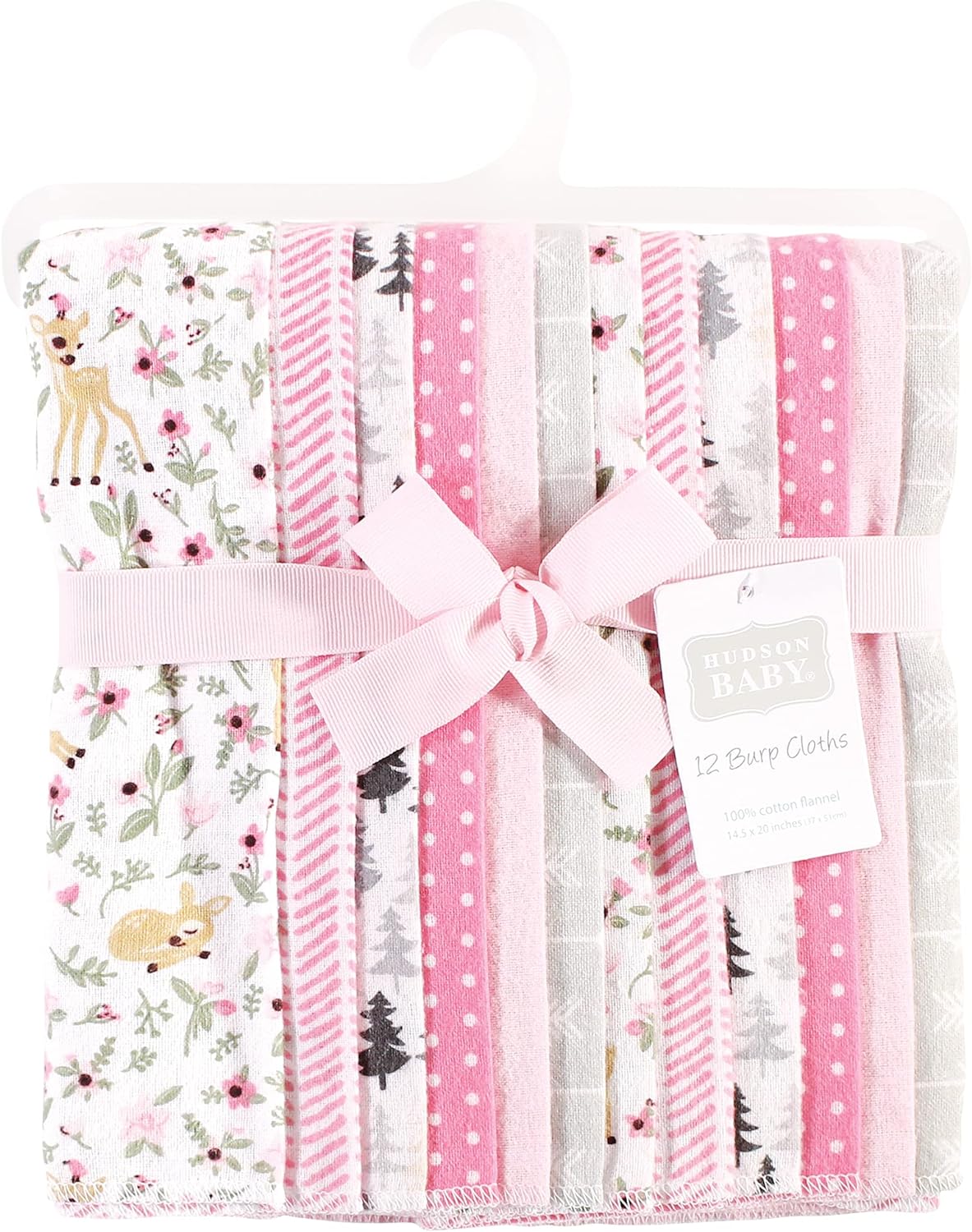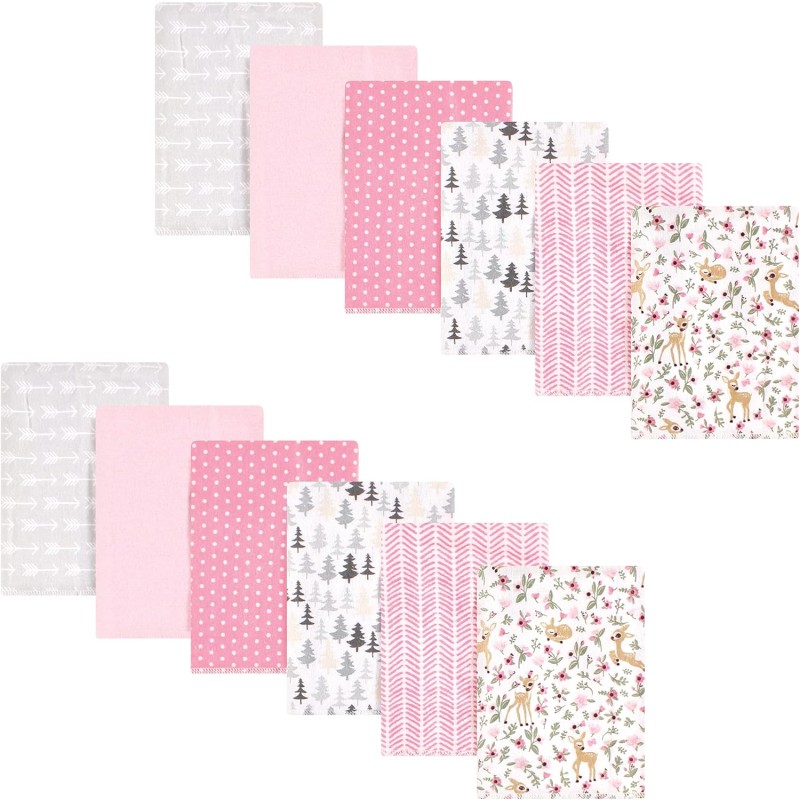 Hudson Baby Unisex Baby Cotton Flannel Burp Cloths Bundle, Girl Woodland Pals, One Size(One Size Girl Woodland)