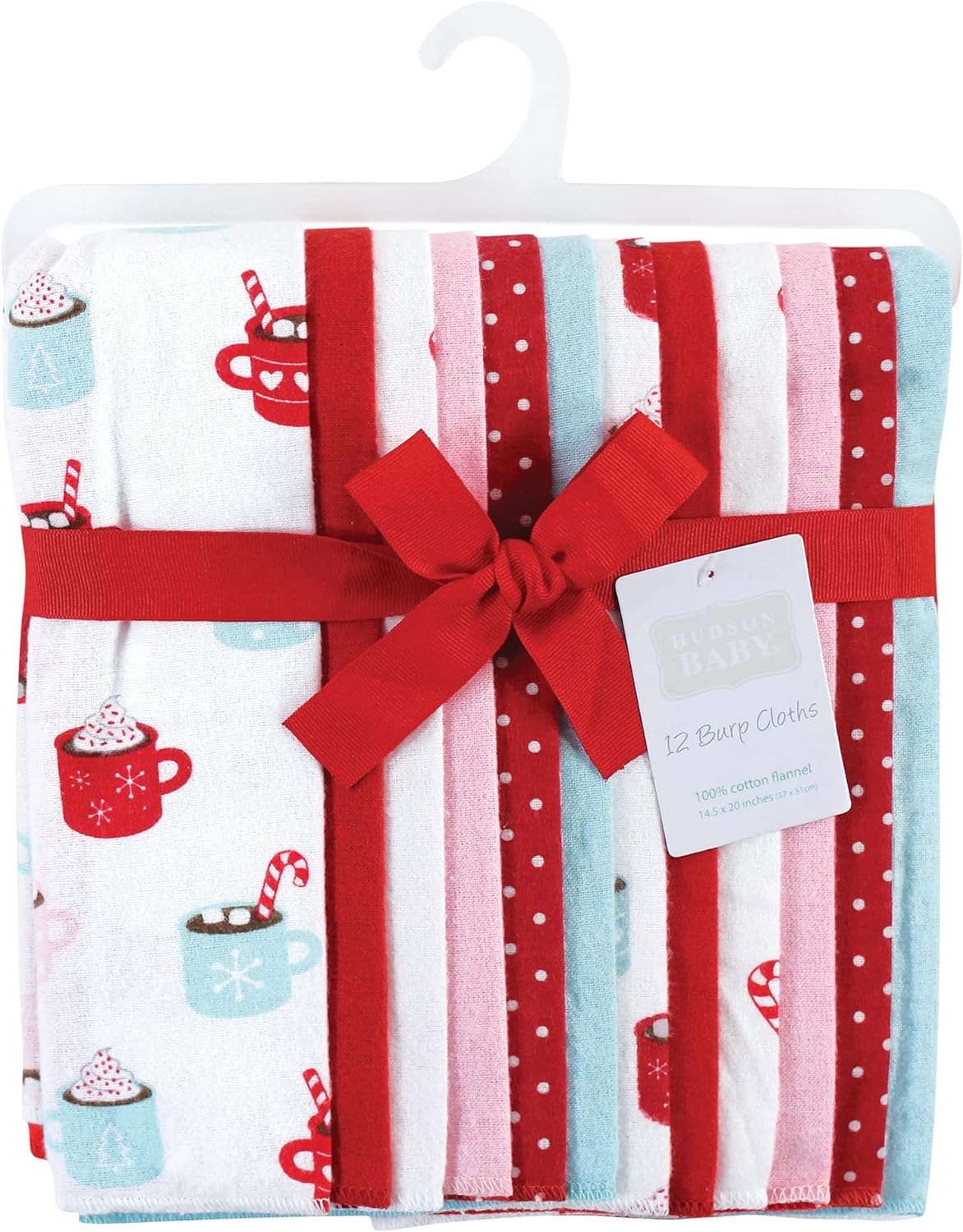 Hudson Baby Unisex Baby Cotton Flannel Burp Cloths Bundle, Girl Woodland Pals, One Size(One Size Hot Cocoa)