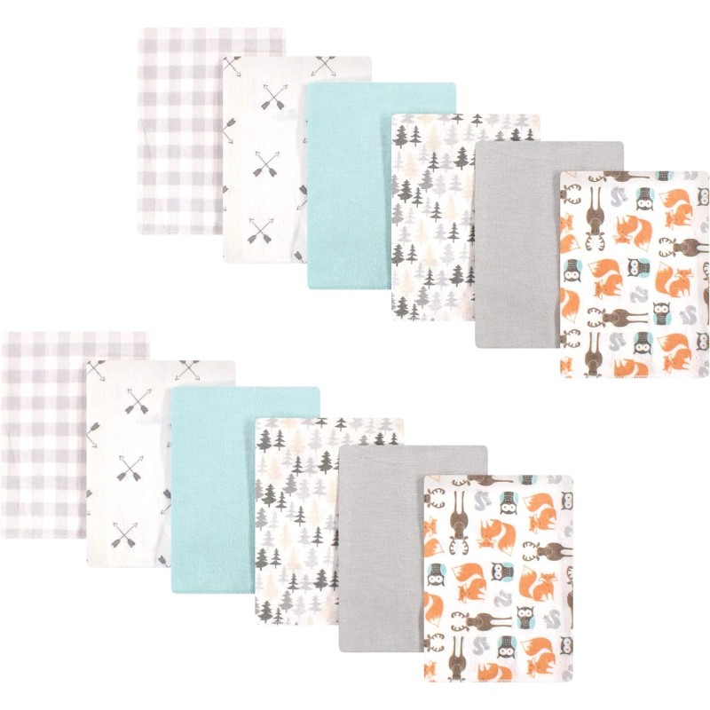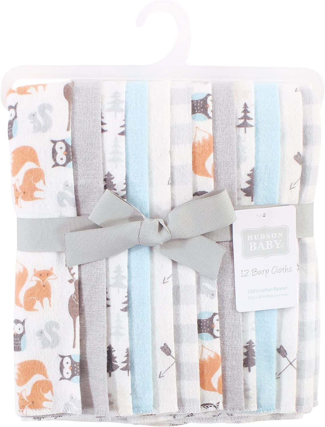 Hudson Baby Unisex Baby Cotton Flannel Burp Cloths Bundle, Girl Woodland Pals, One Size(One Size Neutral Forest)