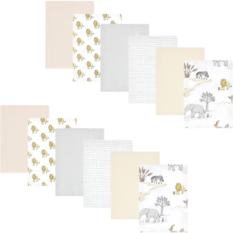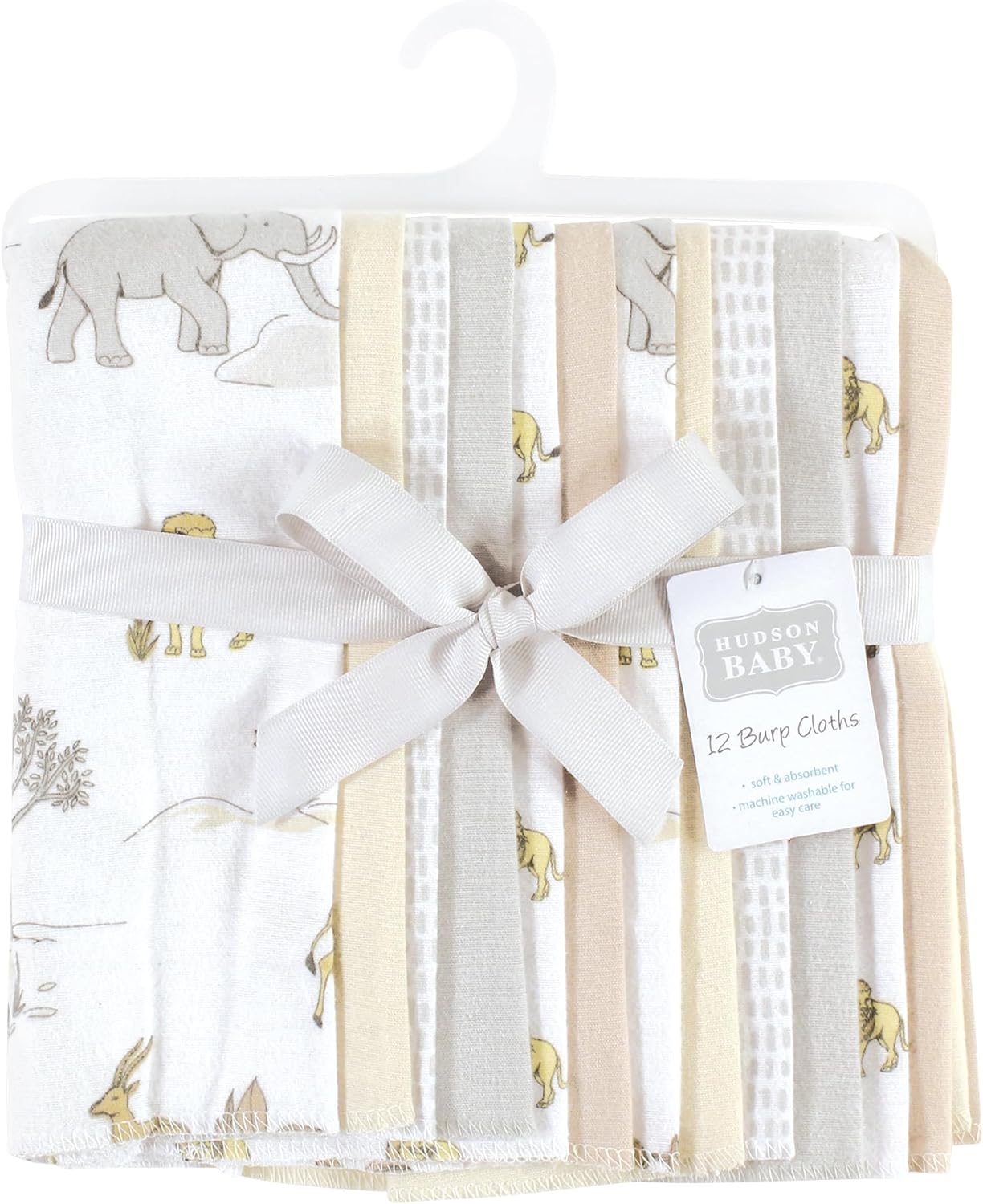 Hudson Baby Unisex Baby Cotton Flannel Burp Cloths Bundle, Girl Woodland Pals, One Size(One Size Neutral Safari World)