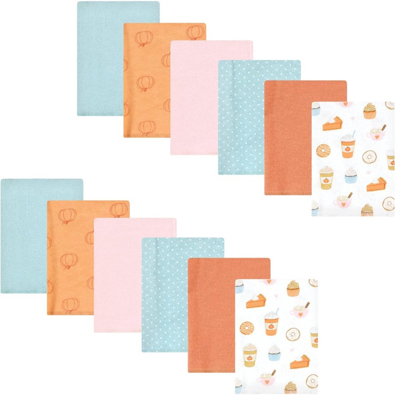 Hudson Baby Unisex Baby Cotton Flannel Burp Cloths Bundle, Girl Woodland Pals, One Size(One Size Pumpkin Truck)